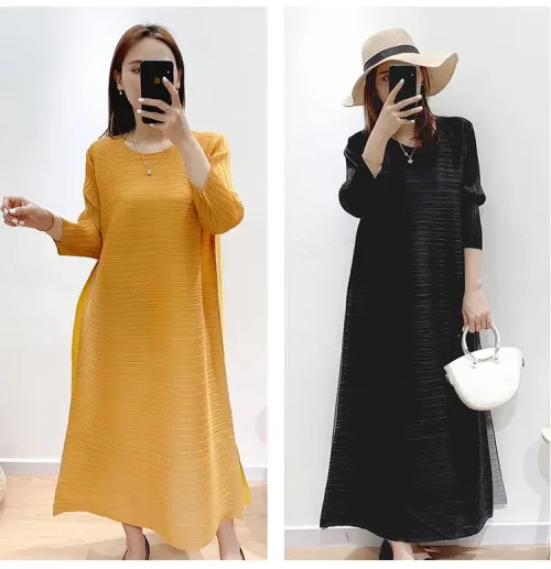 Product Name: Oversize Casual Dress with O-Neck Patchwork Color Blocking Versatile Dresses Pleated Elegant Dresses