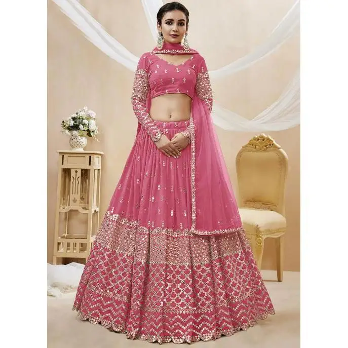 Pink Sequins Georgette Lehenga Choli Work Party Wear Club Dresses