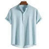 • XH44 Summer 2022 Men Shirts Casual Linen Material Tops Resort Short Sleeve Slim Breathable Shirt $72.15