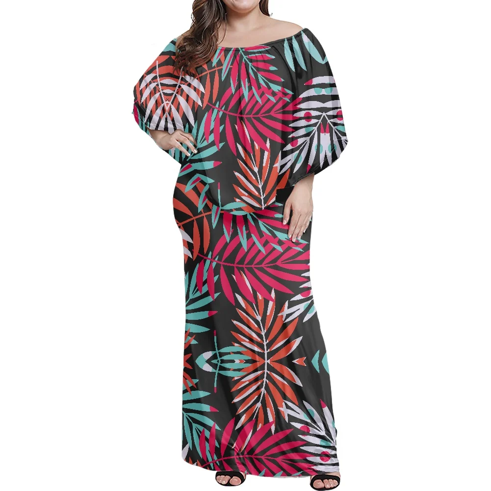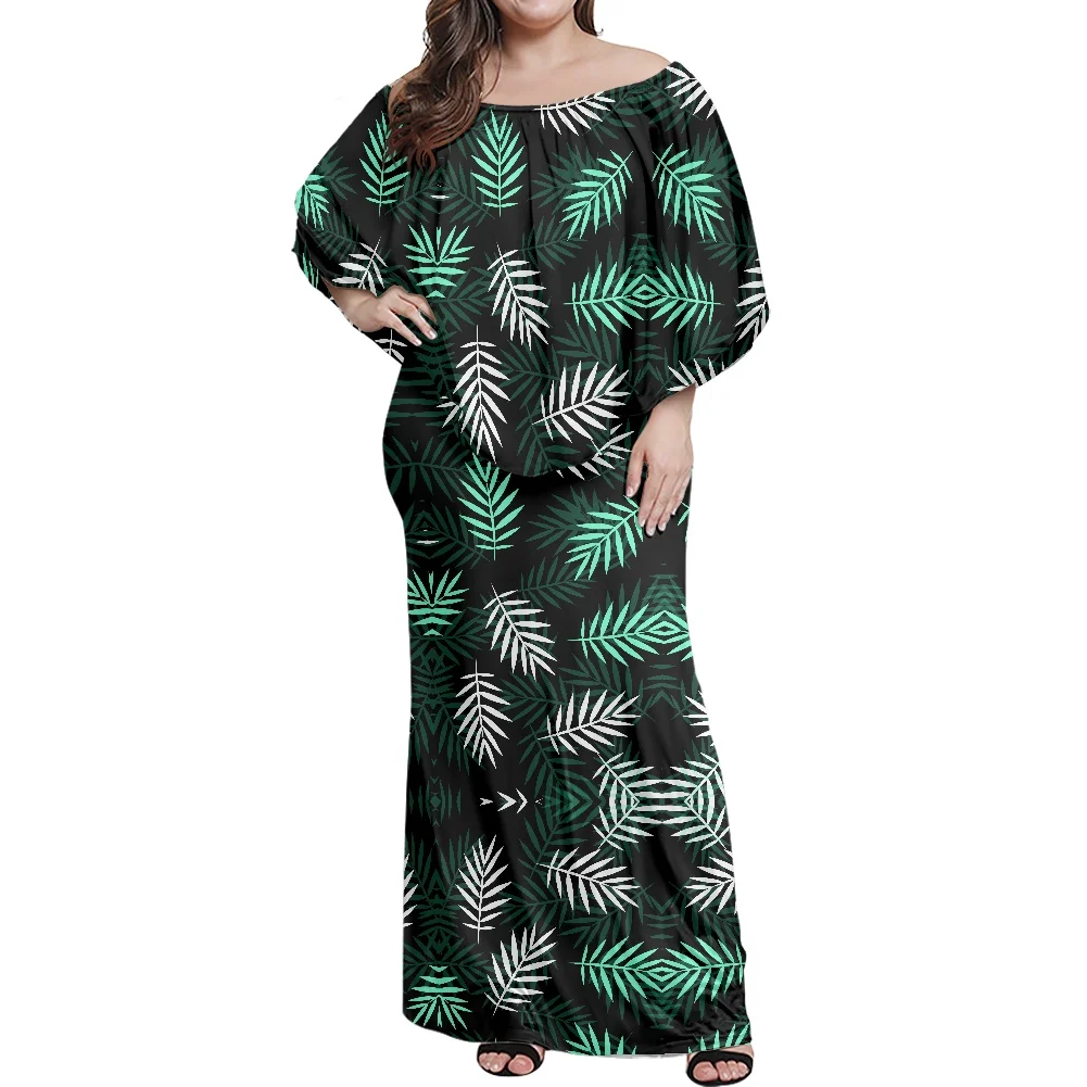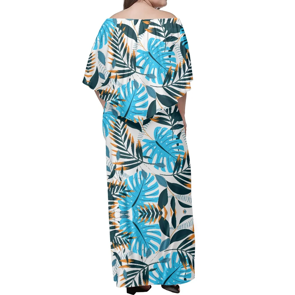 Product Name: Polynesian Tribal Plumeria Leaf Print Off the Shoulder Ruffle Bodycon Party Maxi Dresses Sundress Summer Women Maxi Dress Ladies