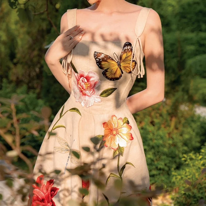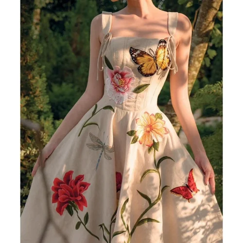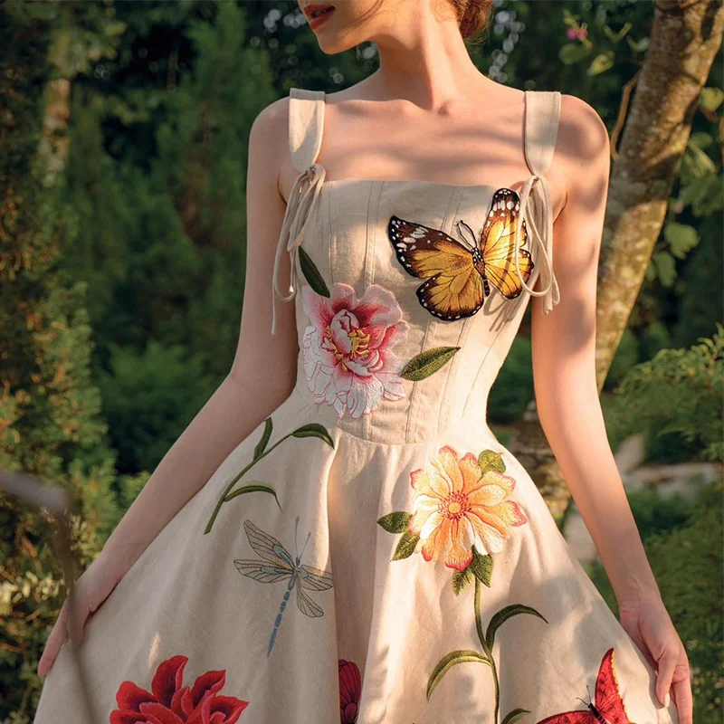 Princess Party Dress Flower Women’s Sun Dress 2023 Summer New 3D Print Retro Waist Strap Dress