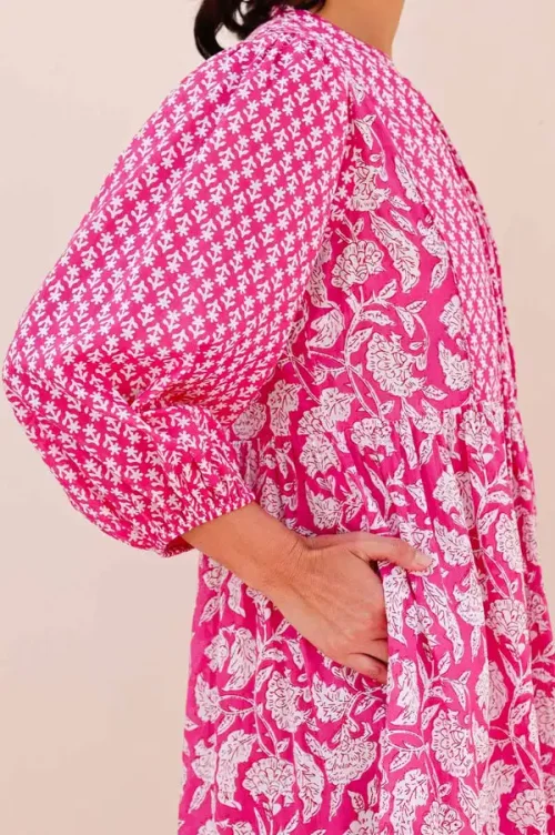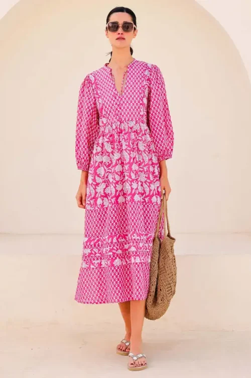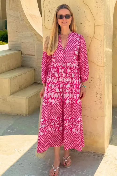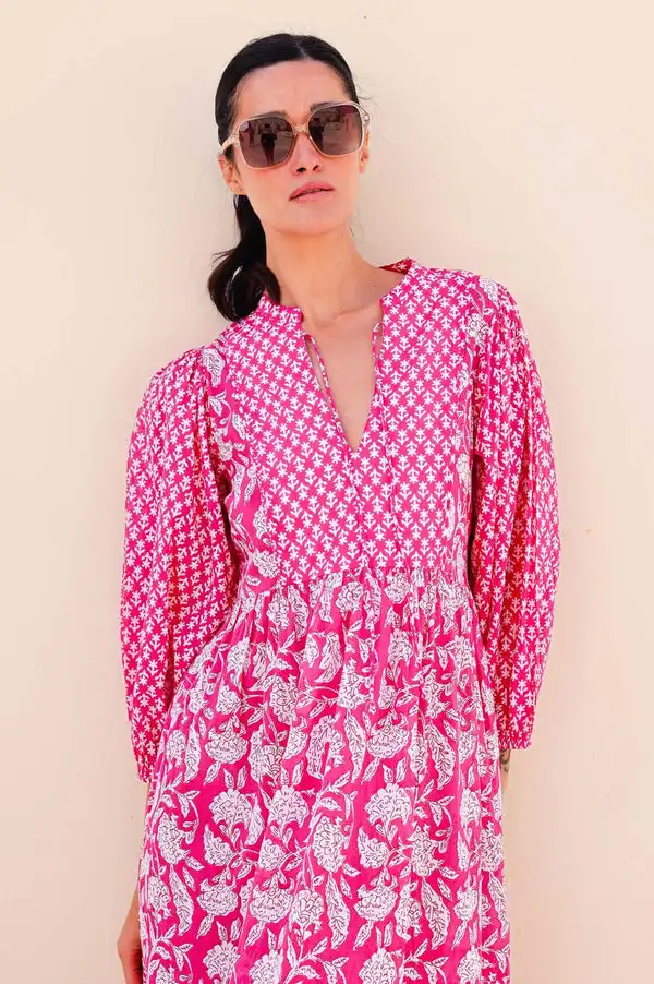 Pure Cotton Boho-Elegant Summer Dress for Women Indian Block Print Soft Floral Comfortable Daywear Earthy for Office Lady Outfit