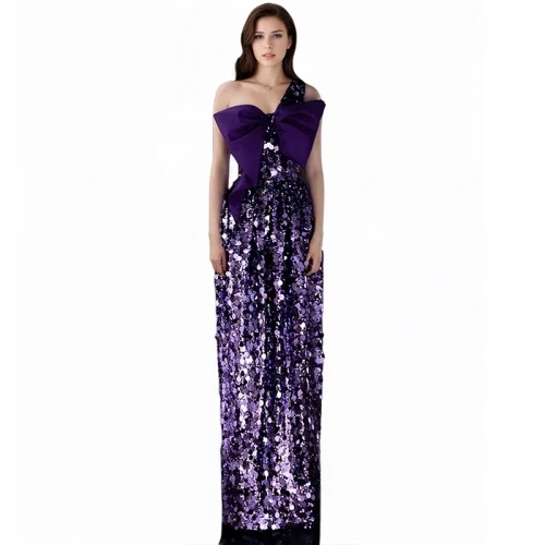 Product Name: Purple Dress Beautiful Light Dress Daily Can Wear Long Bow Party Glitter Senior Sense Party Dress