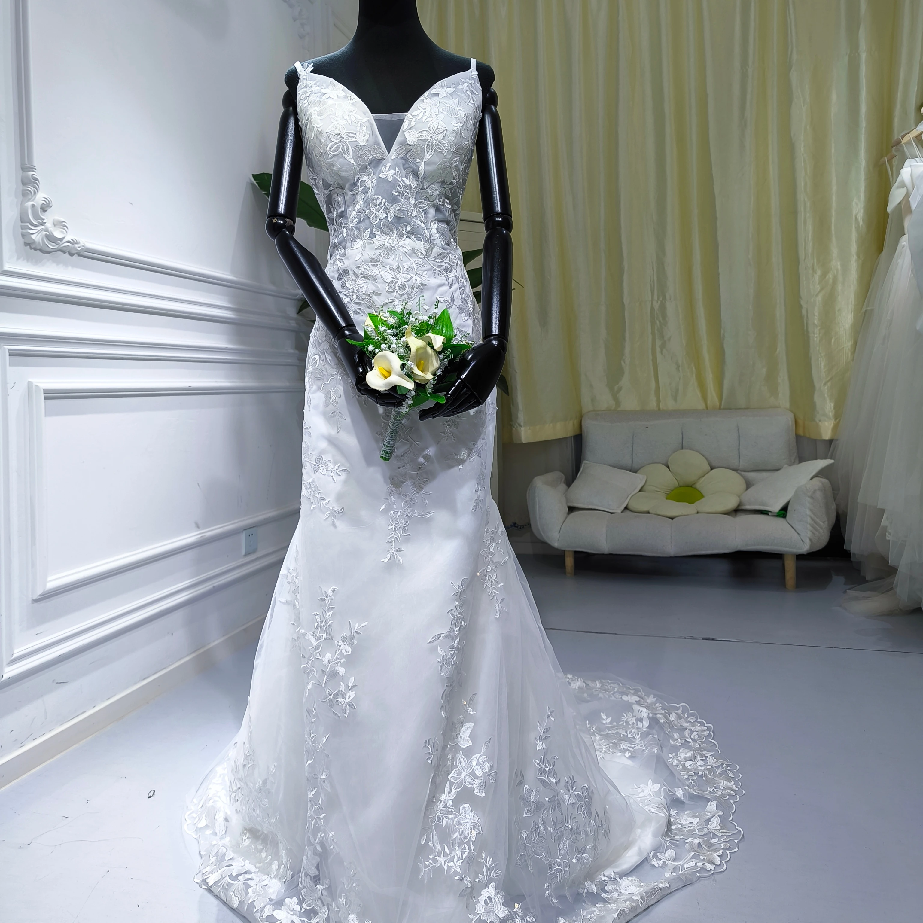 Product Name: S0176N Heavy Work Bead Shoulders Formal Luxury Evening Gowns with Shoulder Beads Wedding Dresses
