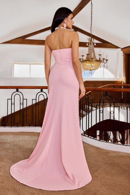 Sefa Open Shoulder Flower High Slit Maxi Dress – Pink
