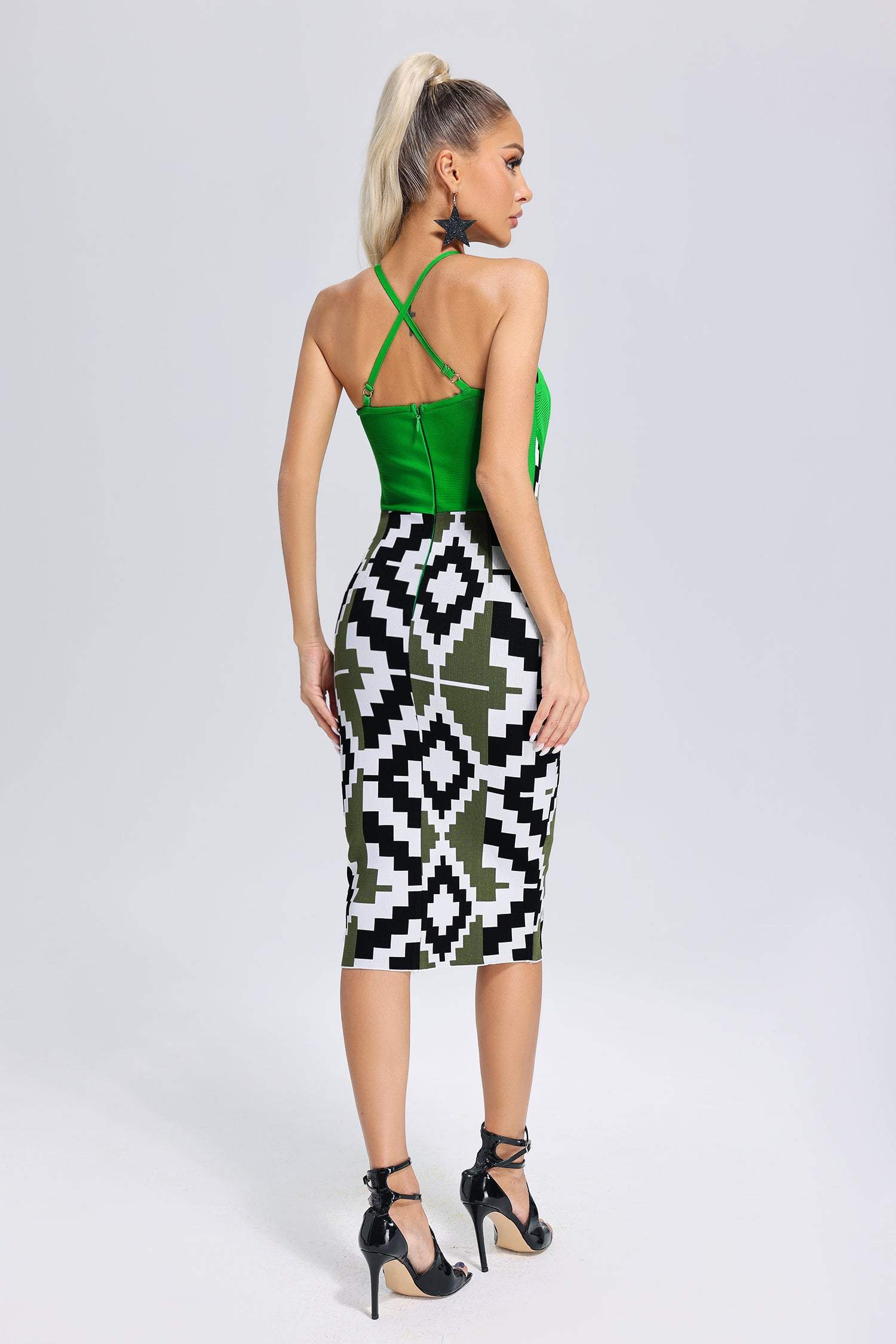 Siola Crossneck Bandage Midi Dress