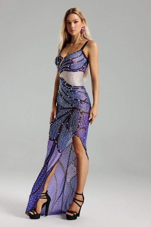 Sling Diamante Printed Slit Dress