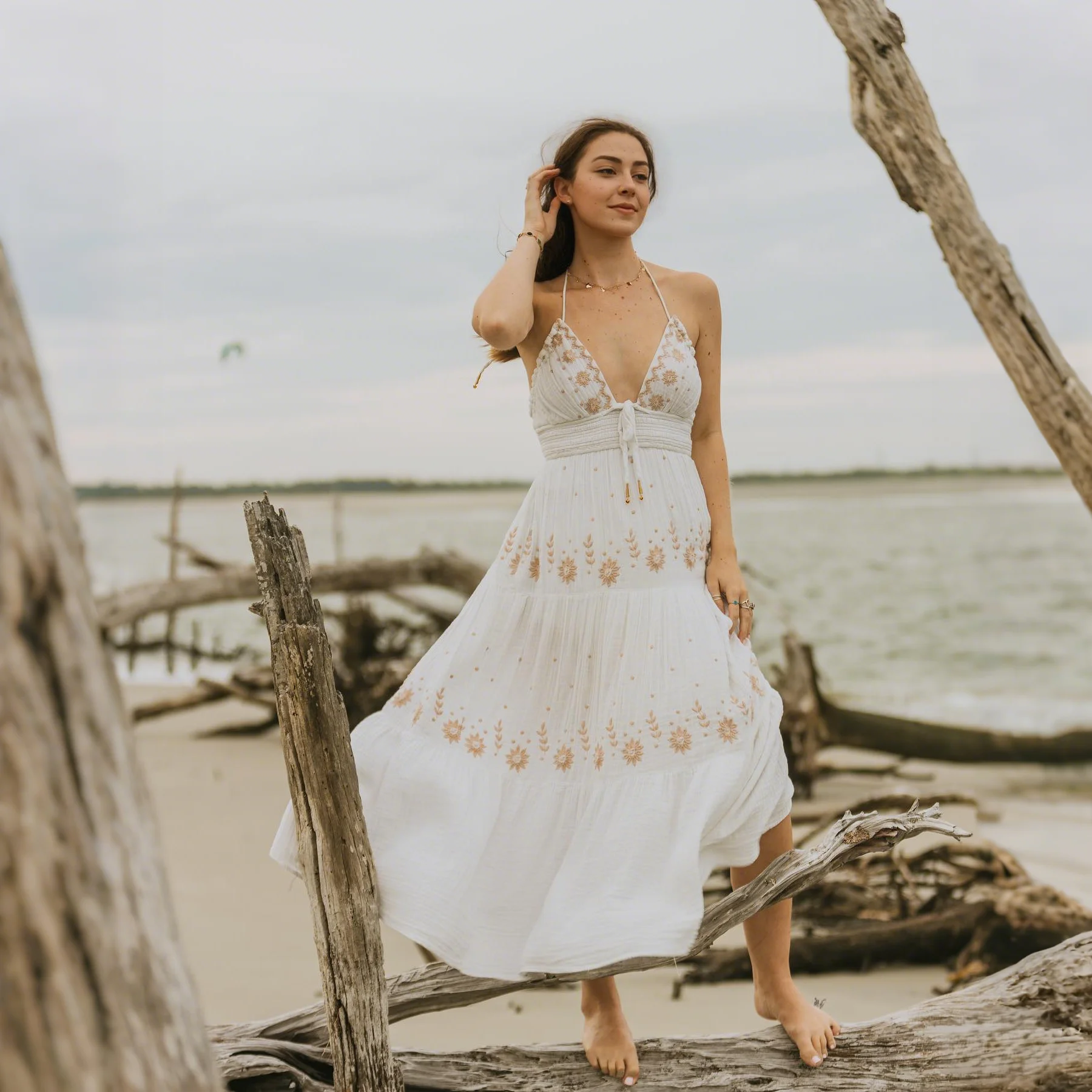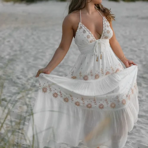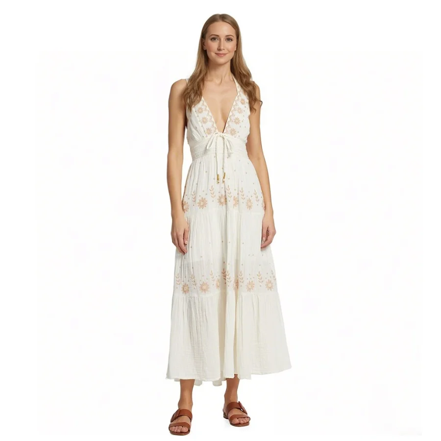 Stunning 2025 Halter Neck Sleeveless Sundress with Spaghetti Strap and Embroidered Linen a Boho Maxi Dress for Beach
