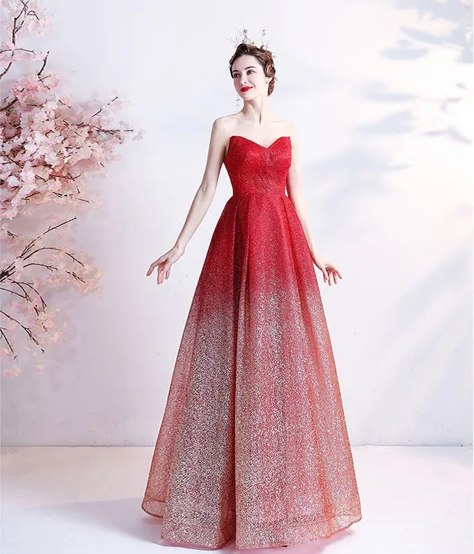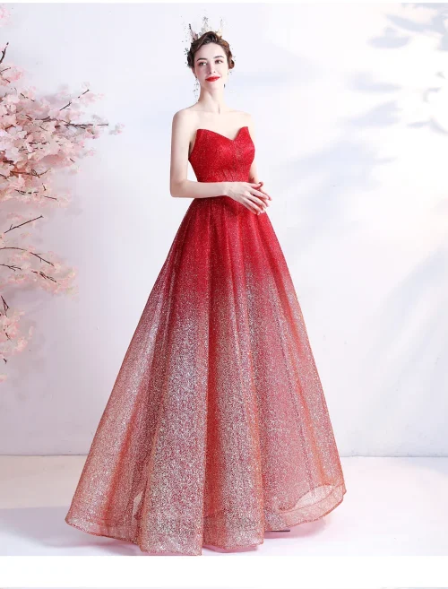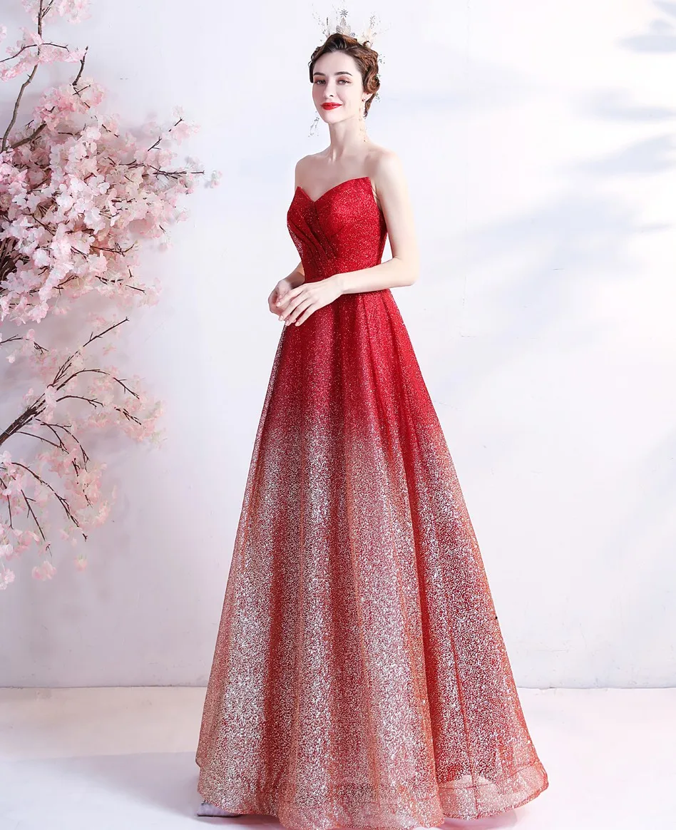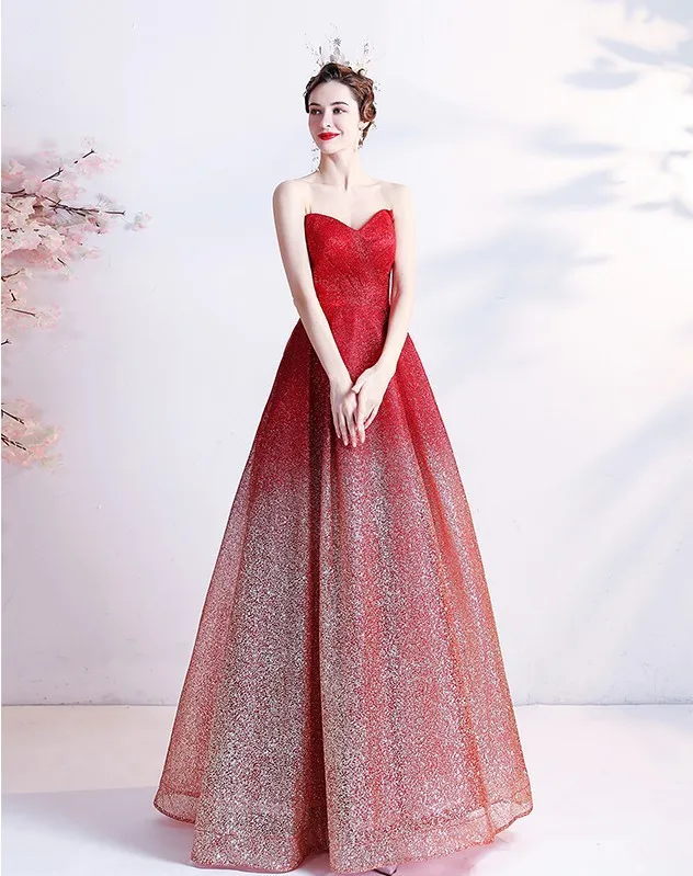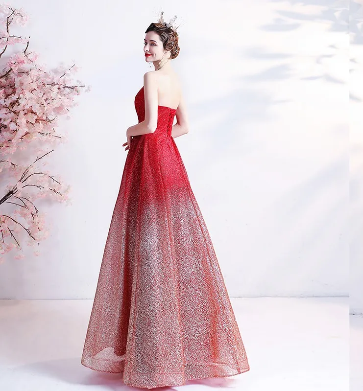 Stylish Red Sleeveless Fashion Newest Evening Dress Waistband V-Neck Sequin Gradient Fashion Newest Evening Dress