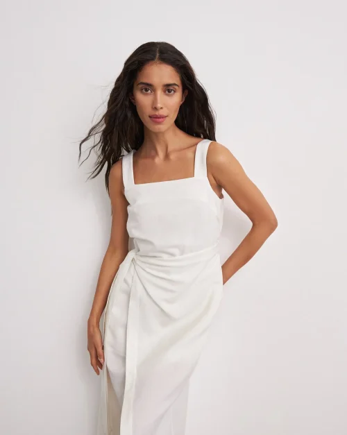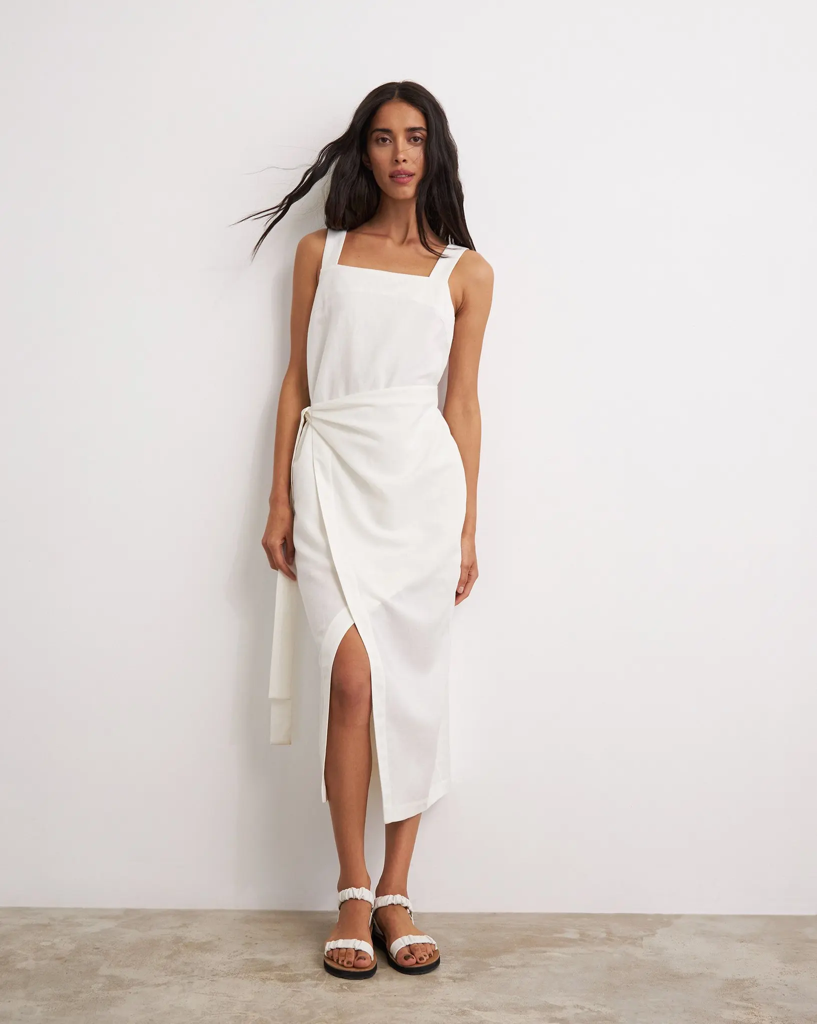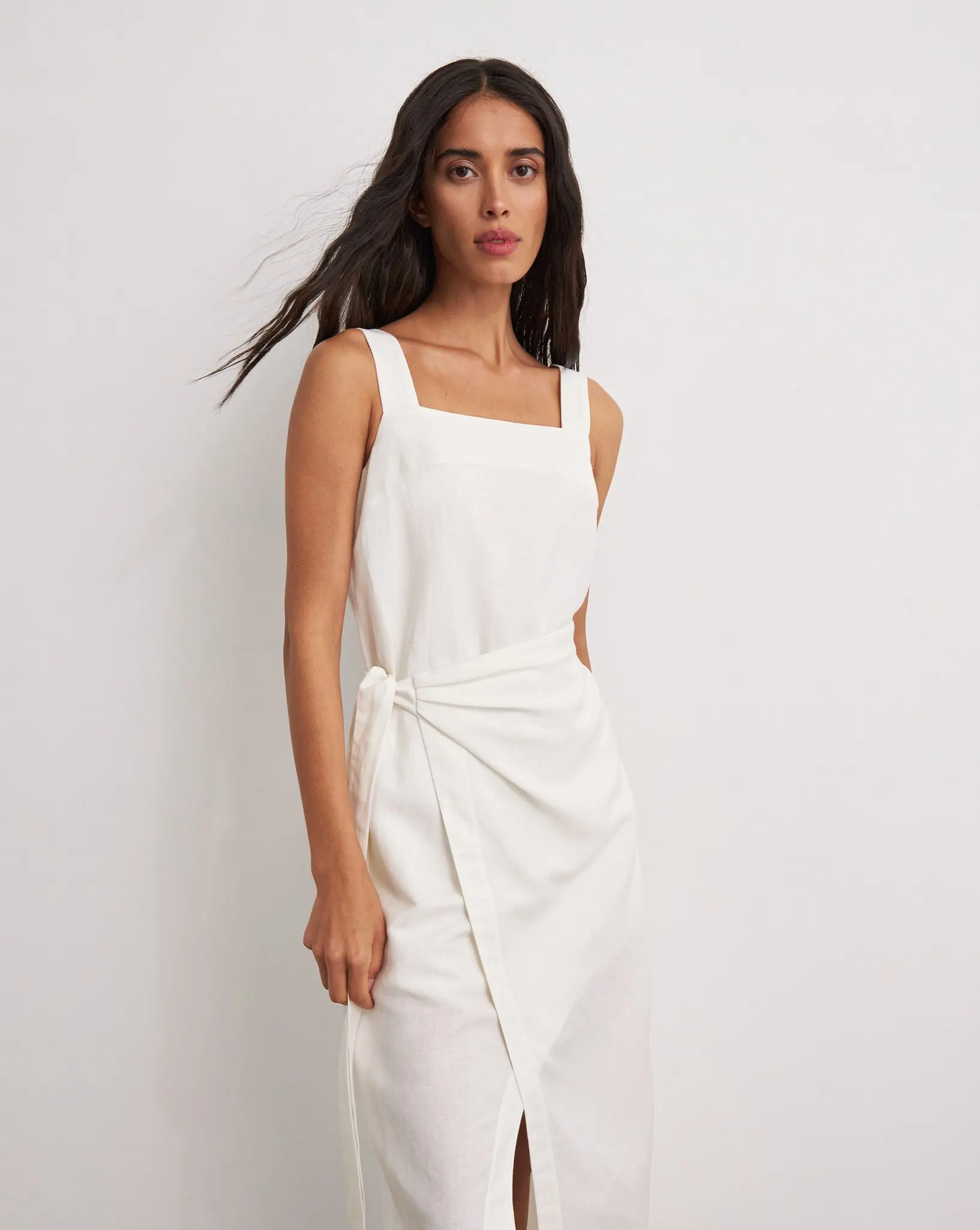 Product Name: Summer Casual Sleeveless Side Slit Plain Linen Wrap Maxi Long Dress Sundress for Women