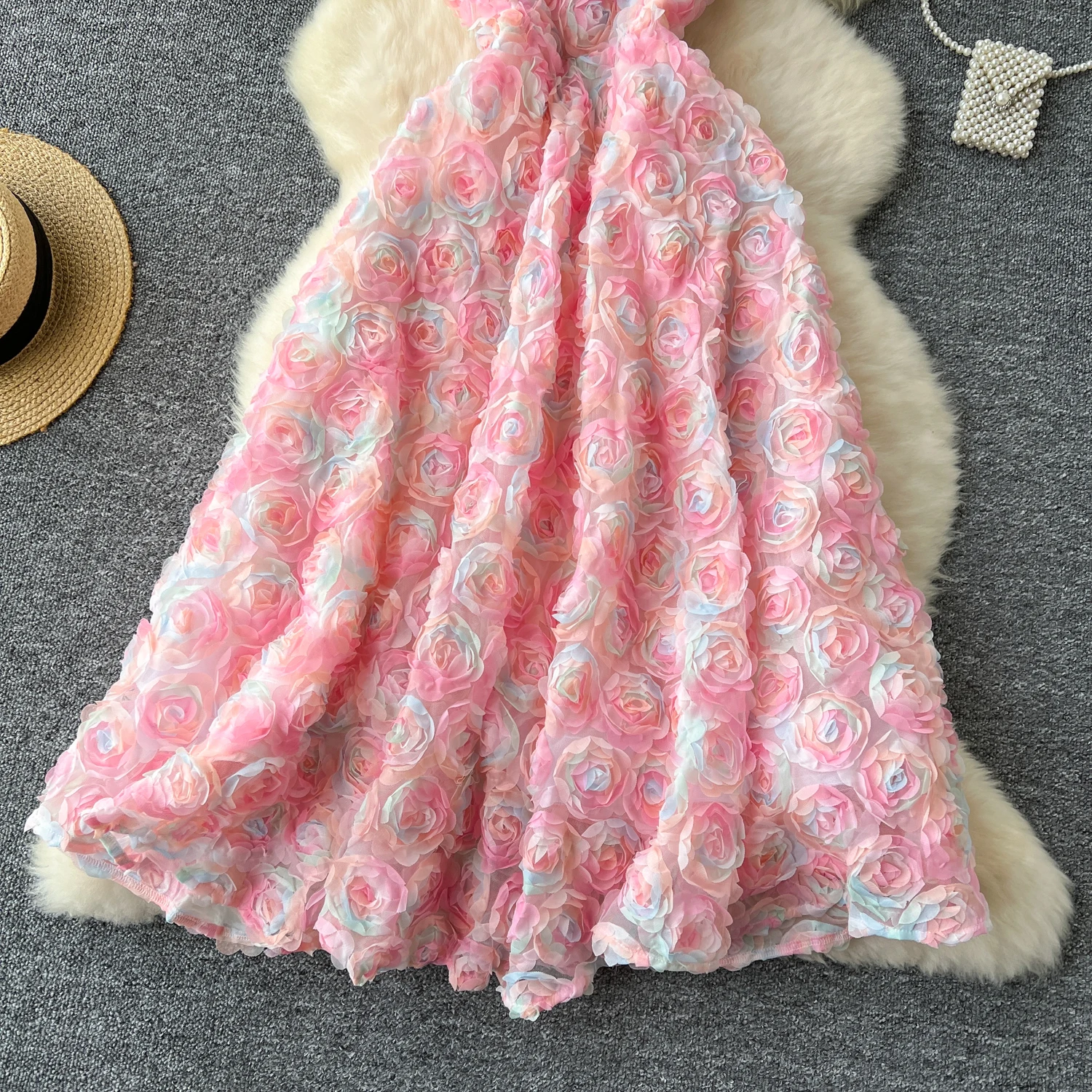 Summer Elegant Tunic Casual for Women Sleeveless 3D Lace Vestidos