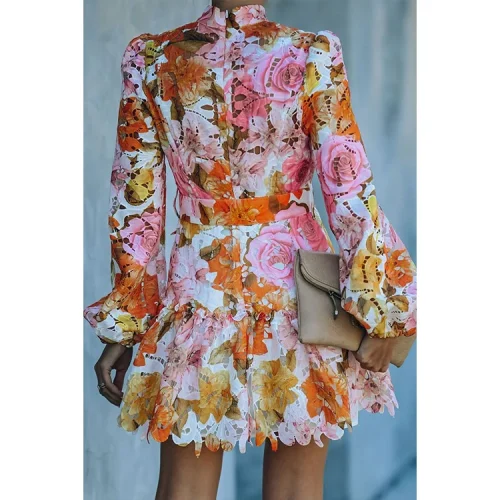 Summer Floral Ruched Mini Dress Women Tie Shoulder Ruffle Bust Elegant Casual Sundress Party Beach Wear Fashion 2025 Trendy