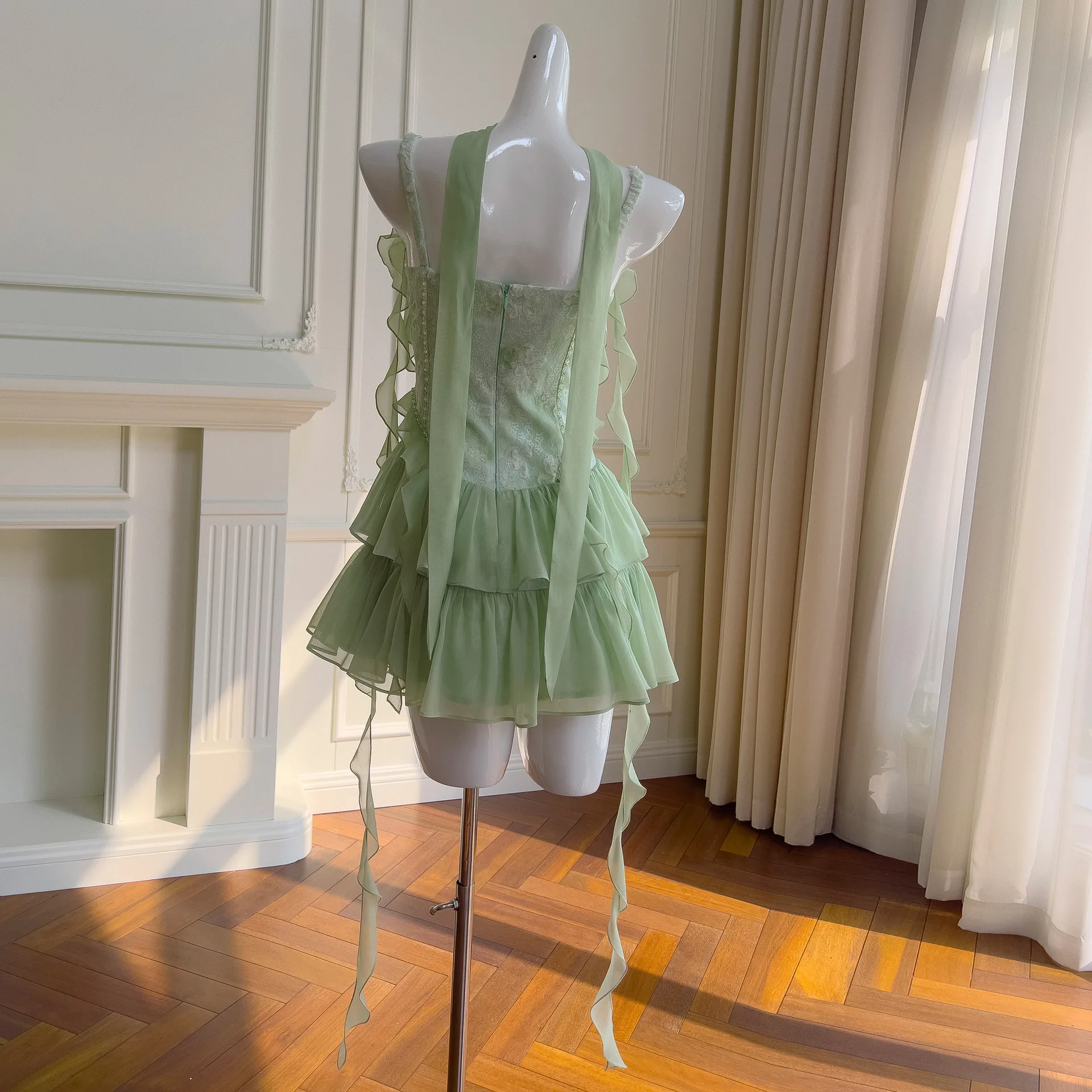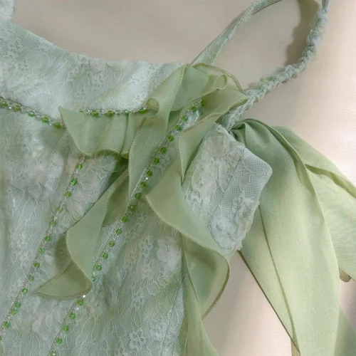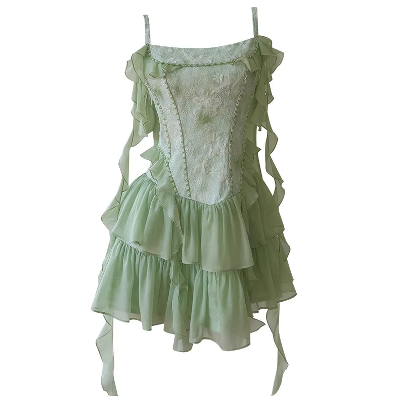 Summer High Quality Women’s Lace Boutique Tube Top Short Dress Ruffle Splicing Slim Fit Light Luxury Short Dress