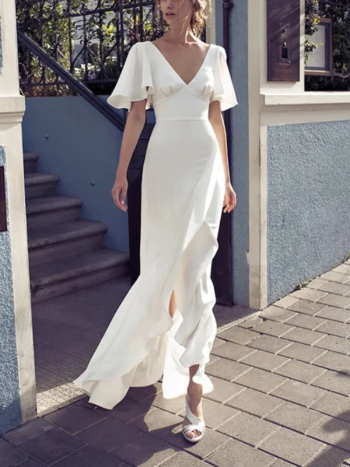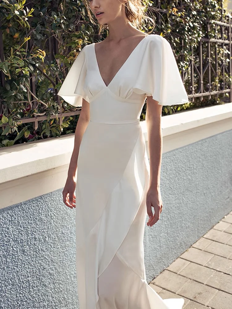 Product Name: Summer Hight Quality V-Neck Fashion Casual Dress Plus Size Night Dresses for Woman Solid White Color Dress