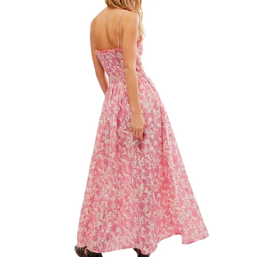 Product Name: Summer Lady Elegant Sundress V-Neck Side Pockets Sweet Floral Print Sleeveless Maxi Casual Women’s Dresses