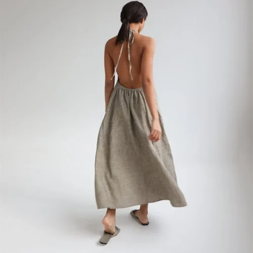 Summer Pinafore Sundress Open Back Slip Dress 100% Cotton Natural Organic Casual Dresses Plus Size Women’s Dresses