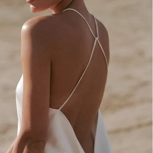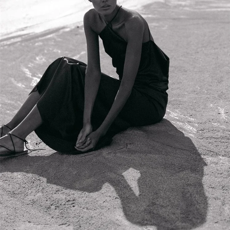 Product Name: Summer Seaside Vacation Women Ladies Crossover Design Halter Neck Backless Beach Dress Acetic Acid Satin Sexy Dress for Sale