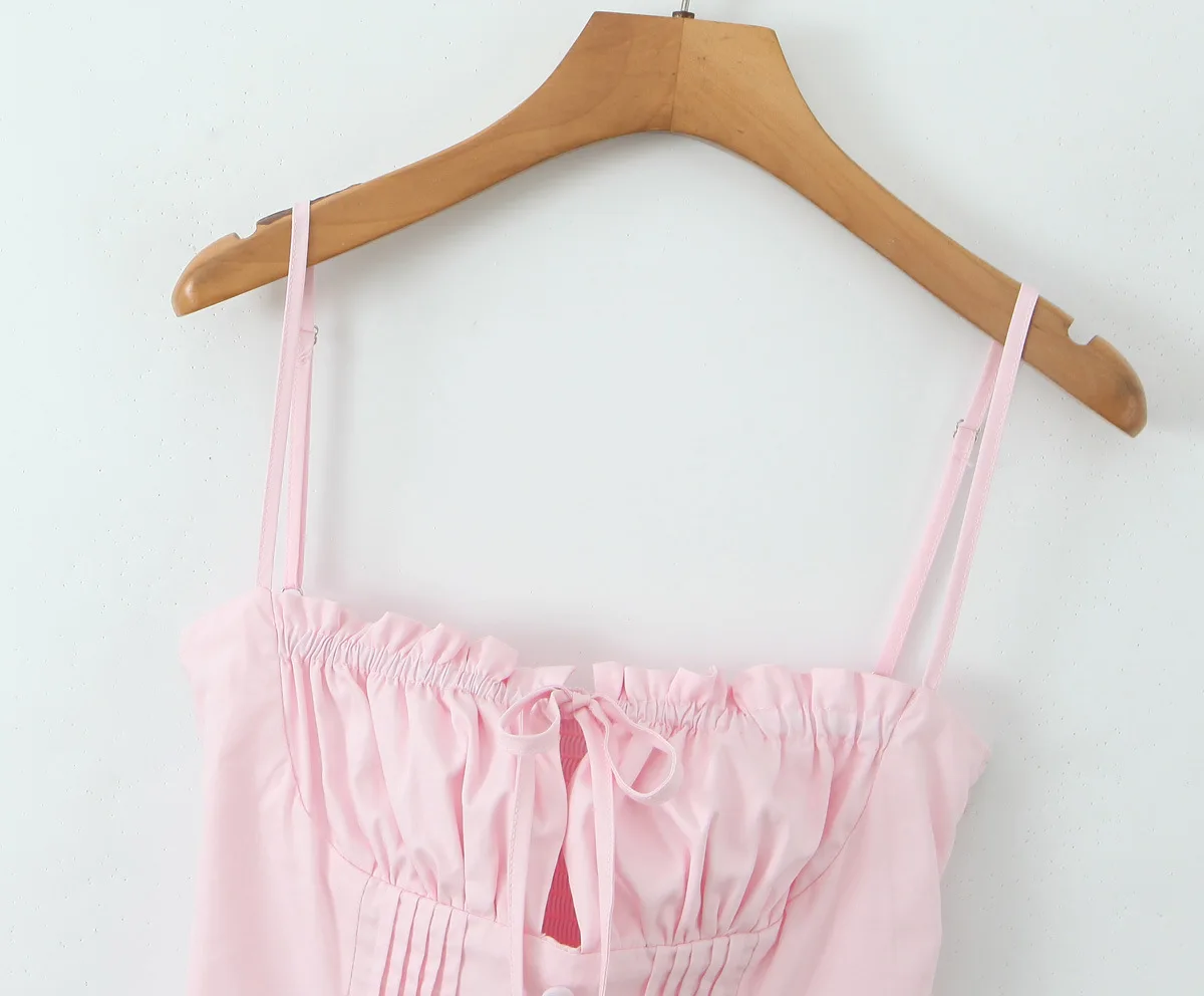 Product Name: Summer Sleeveless Backless Off-the-Shoulder Dress Solid Color Natural Waistline Sexy Vest Button Eco-Friendly Washable