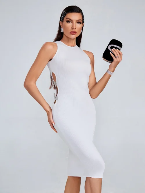 Product Name: Summer White Women’s O Neck Sleeveless Party Wear Casual Bandage Dress Women