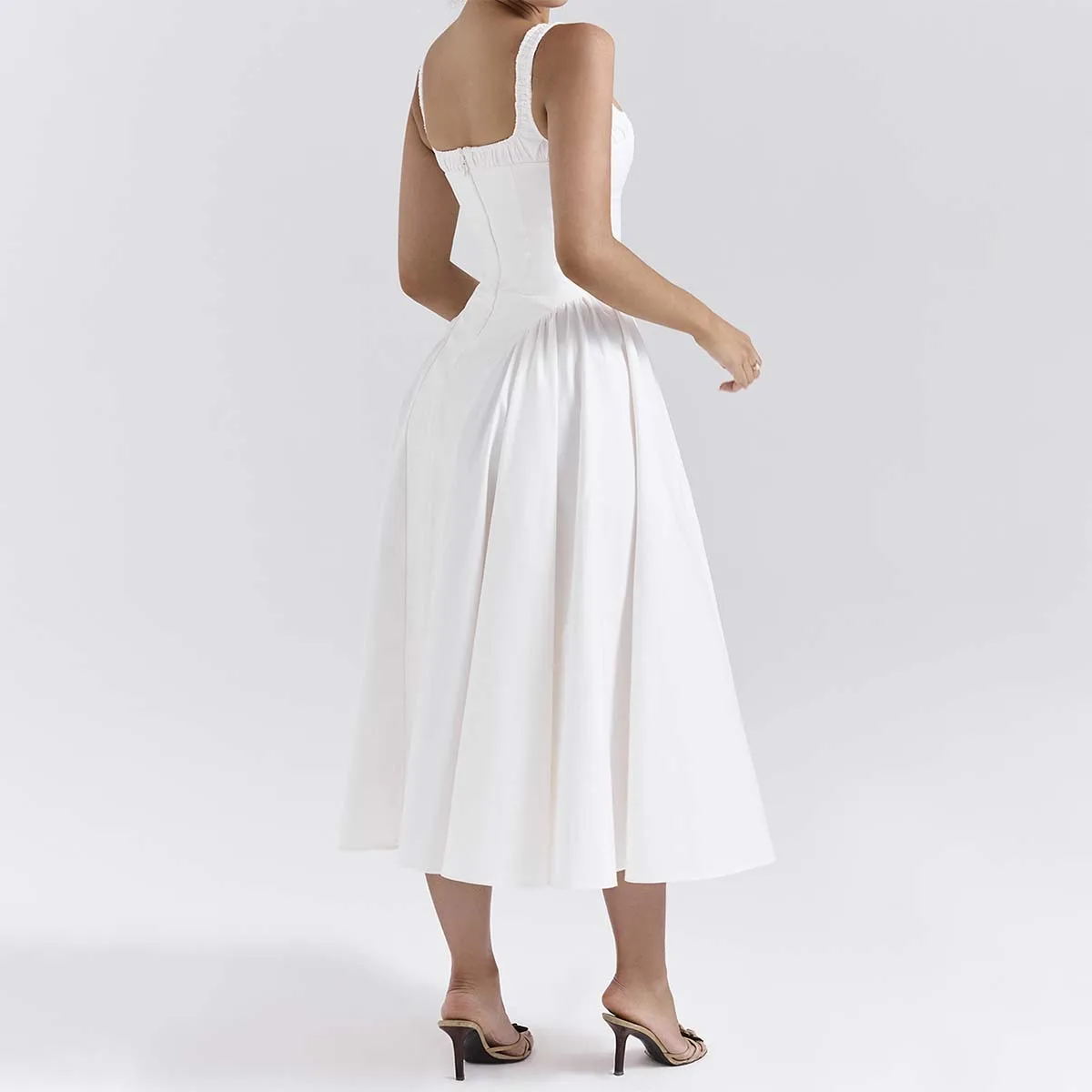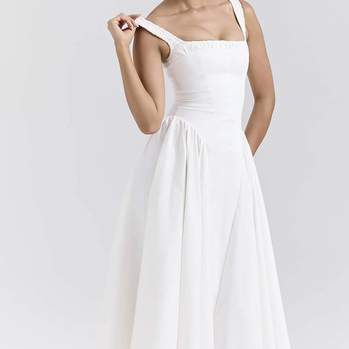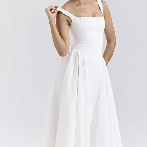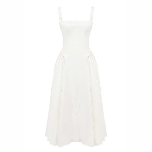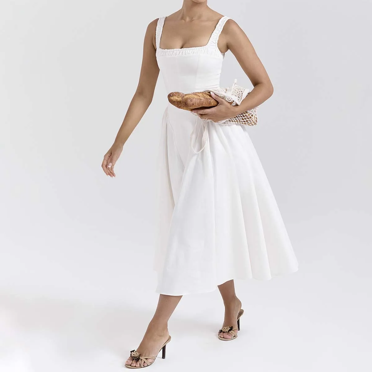 Timeless White Cotton Midi Sundress Perfect for Any Summer Occasion Women Clothing