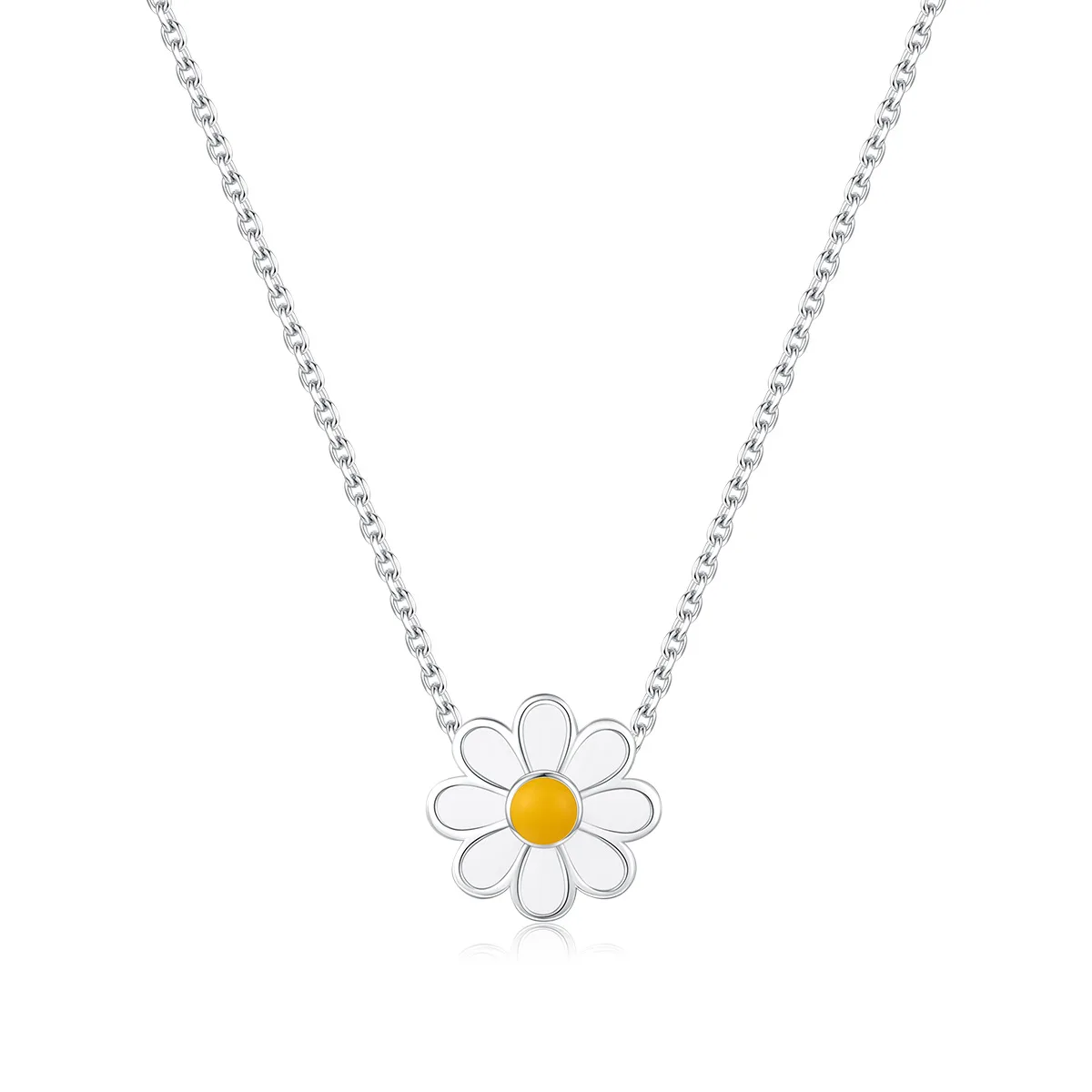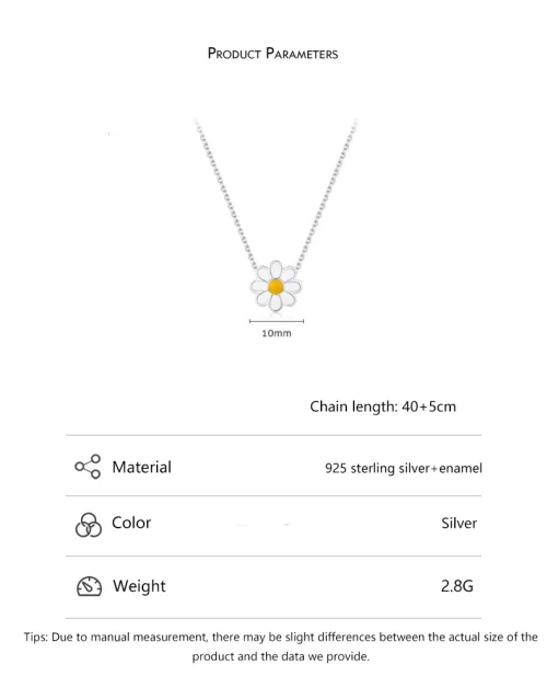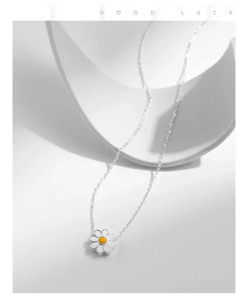 White Enamel Daisy Flower Necklace Light Luxury Women Jewelry Clavicle Chain 925 Silver Rhodium Plated Necklace