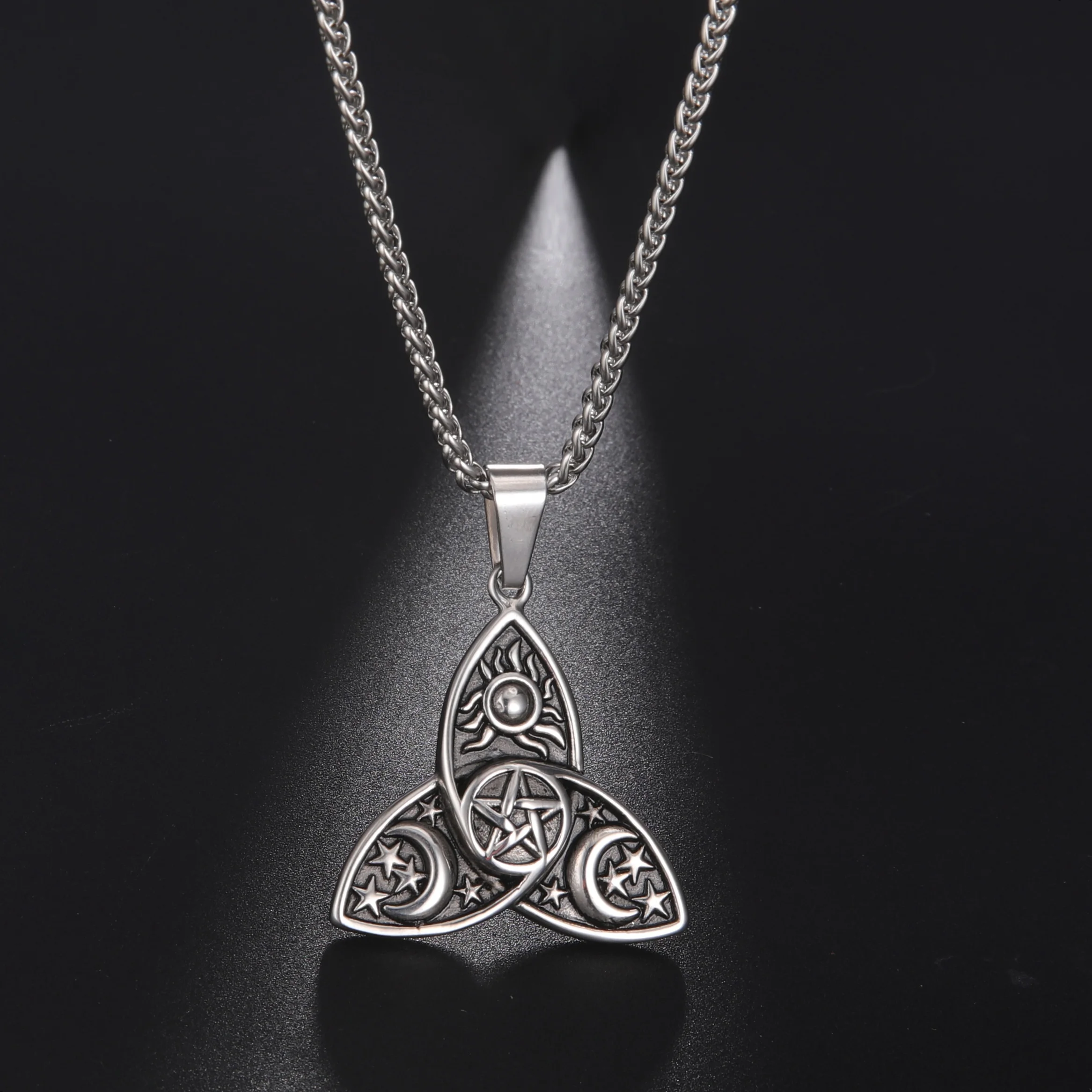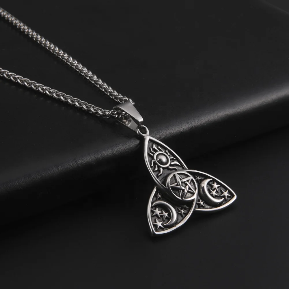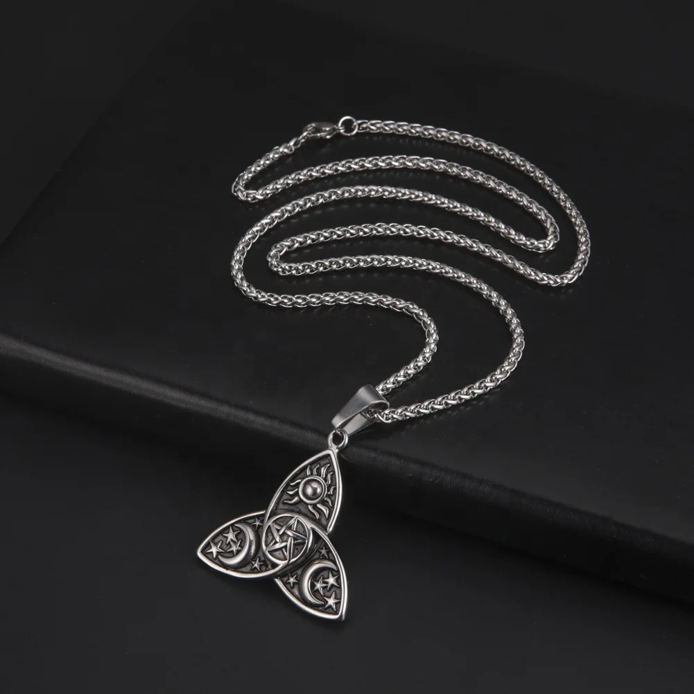 Product Name: Wicca Sun Star Moon Pendants Neck Chain Stainless Steel Necklaces Men Pendant Viking Necklaces Jewelry Gifts