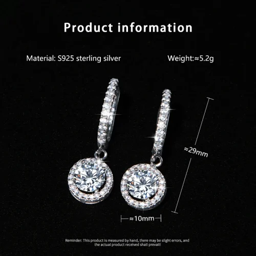 Product Name: With GRA Certificate S925 Silver Vvs D Color 1CT Moissanite Pendant Earrings for Women Wedding Engagement Jewelry