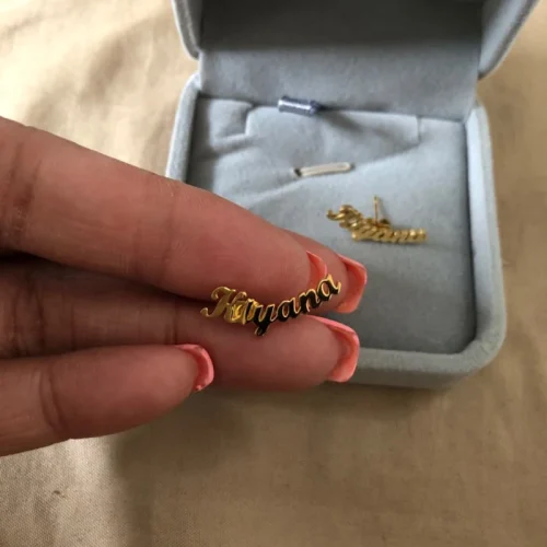 Woman Girl Gold Name Earrings Personalized Stainless Steel Stud Earings Fashion Jewelry