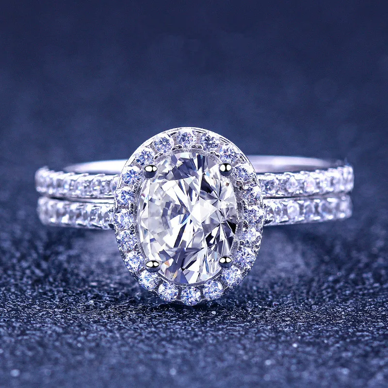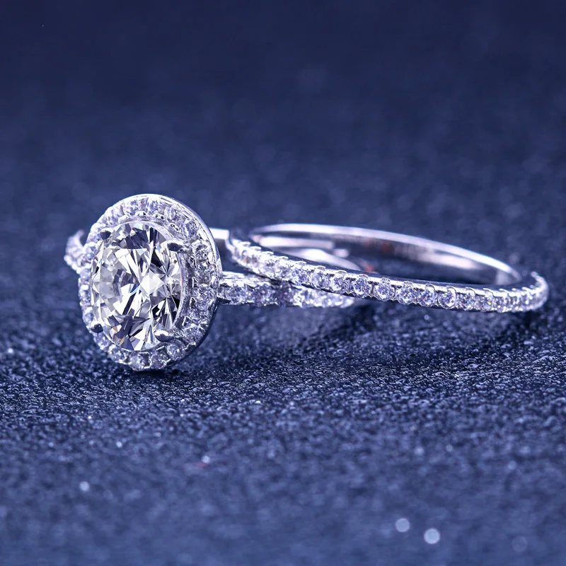 Women Engagement Wedding Silver Ring Micro Pave Zircon Jewelry Lover Ring Set Women’s S925 Sterling