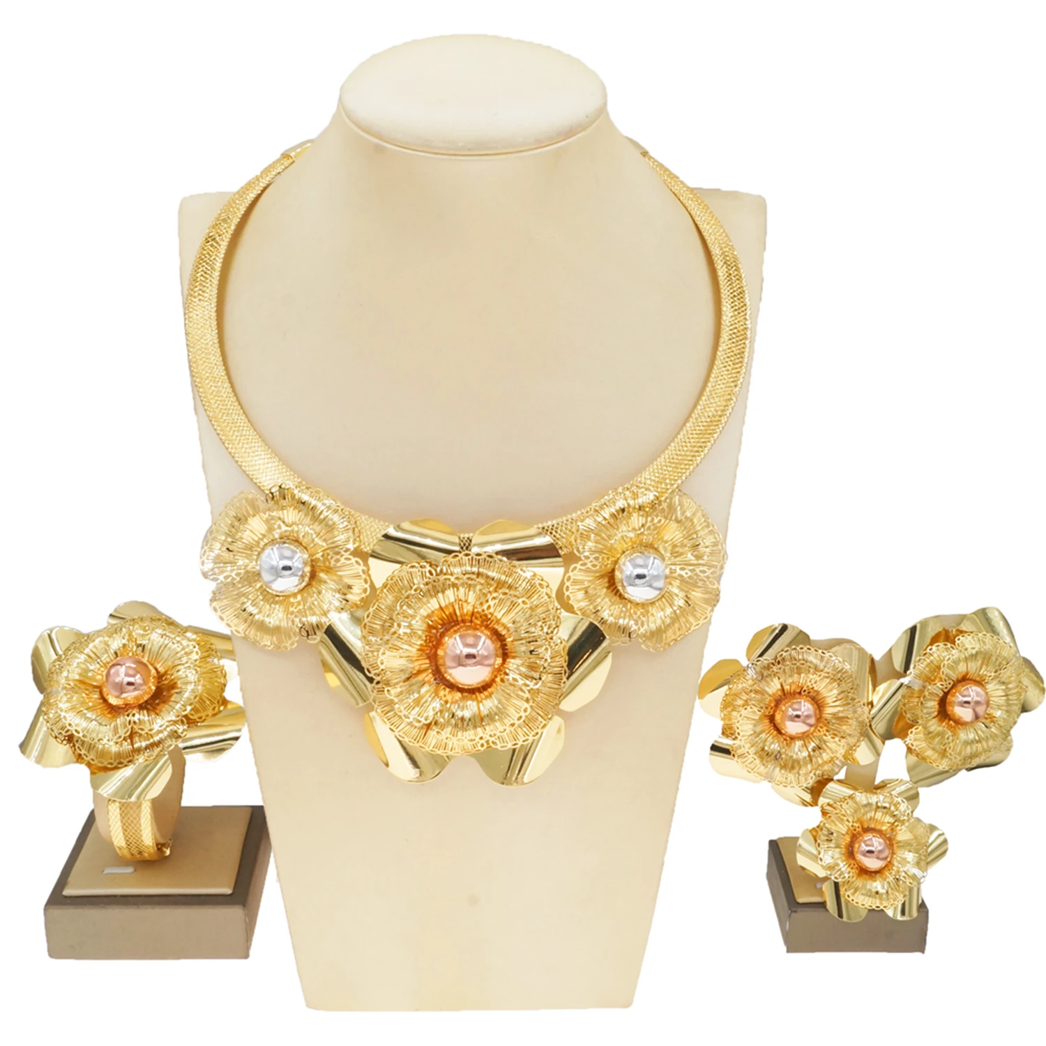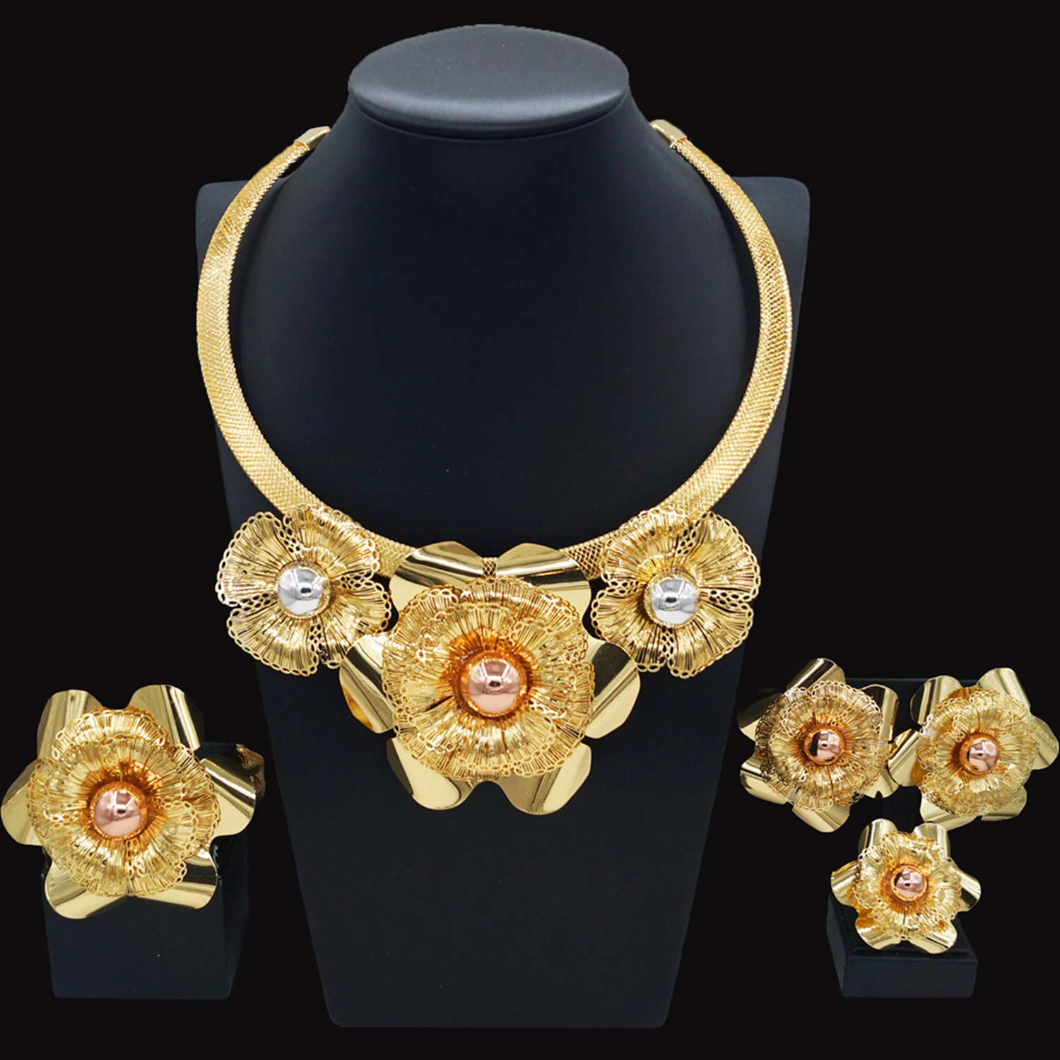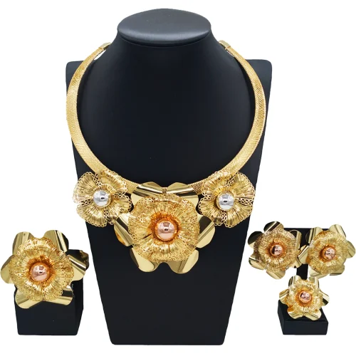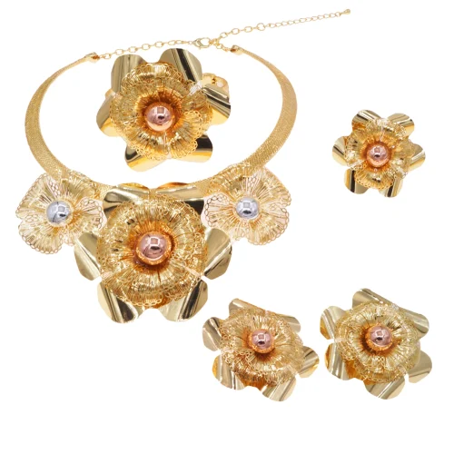 Product Name: Women Fashion Gold Plated Jewelry Set Necklace Bracelet Earring Ring Set Wedding Bridal Party Gift Birthday Jewelry