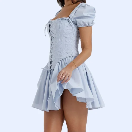 Product Name: Women Floral Square Neck Lace up Vest Drop Waist Fit Flare Mini Sundress Casual Dress