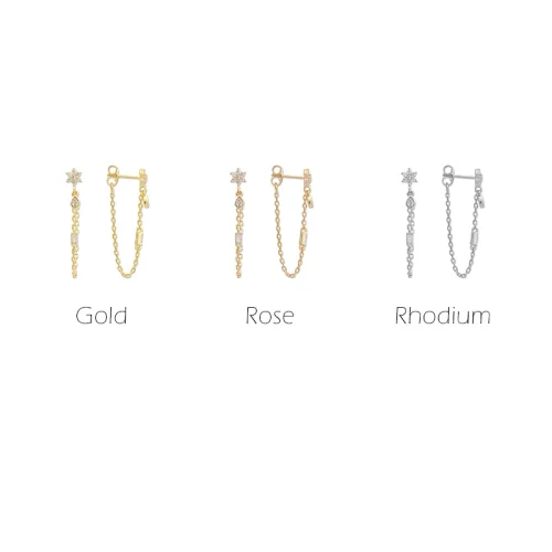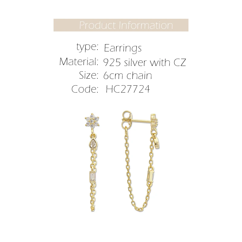 Product Name: Women Jewelry 925 Sterling Silver With 14K 18K Gold Plated Jewellery Drop Dangle CZ Flower Chain Earring