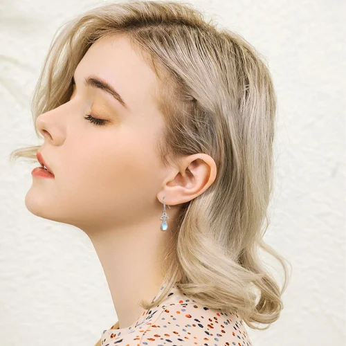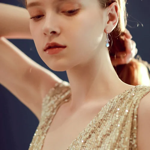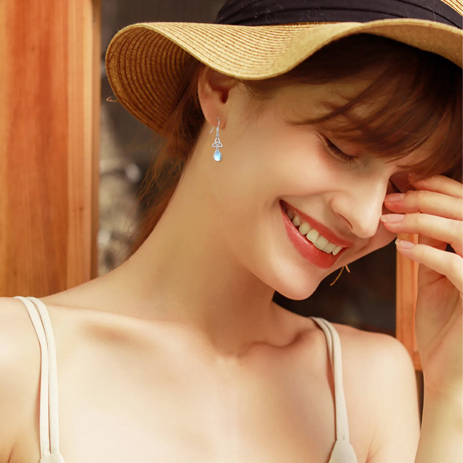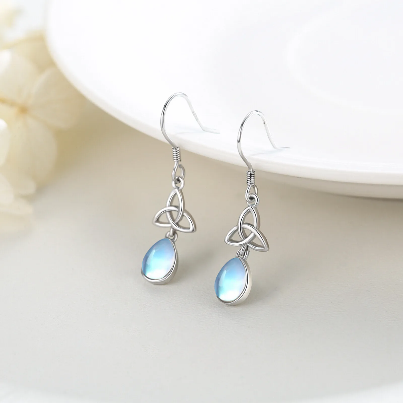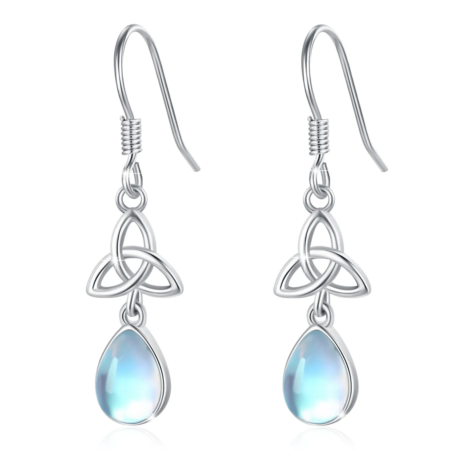 Product Name: Women Jewelry S925 Sterling Silver Rhodium Plated Celtic Knot Moonstone Pendant Hook Earrings