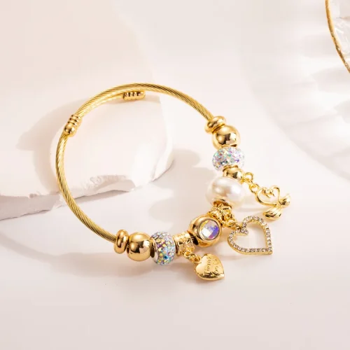 Product Name: Women Stainless Steel Bracelet Diamond Inlaid Crystal Bead Bracelet Love Pendant Adjustable Opening Charm Bracelet