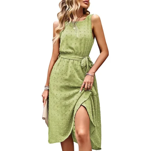 Product Name: Women Summer Dresses Belted Sleeveless Split Midi Dress Casual Crew Neck Boho Sundress With Pockets