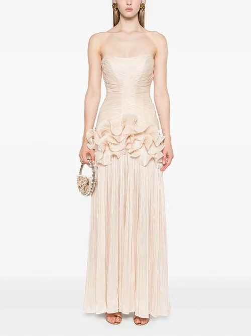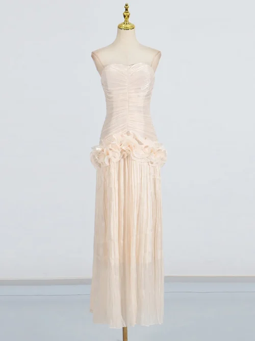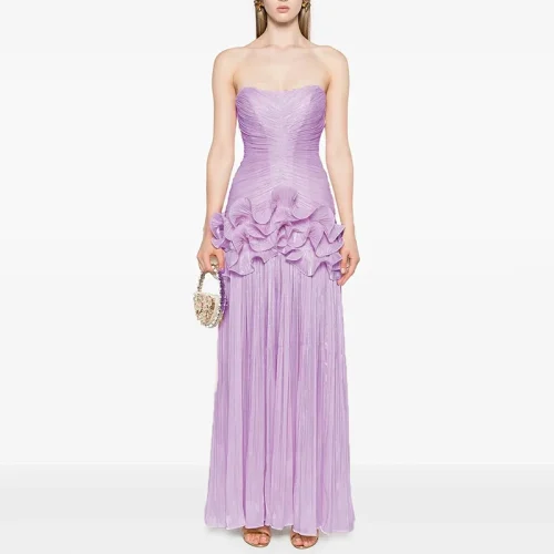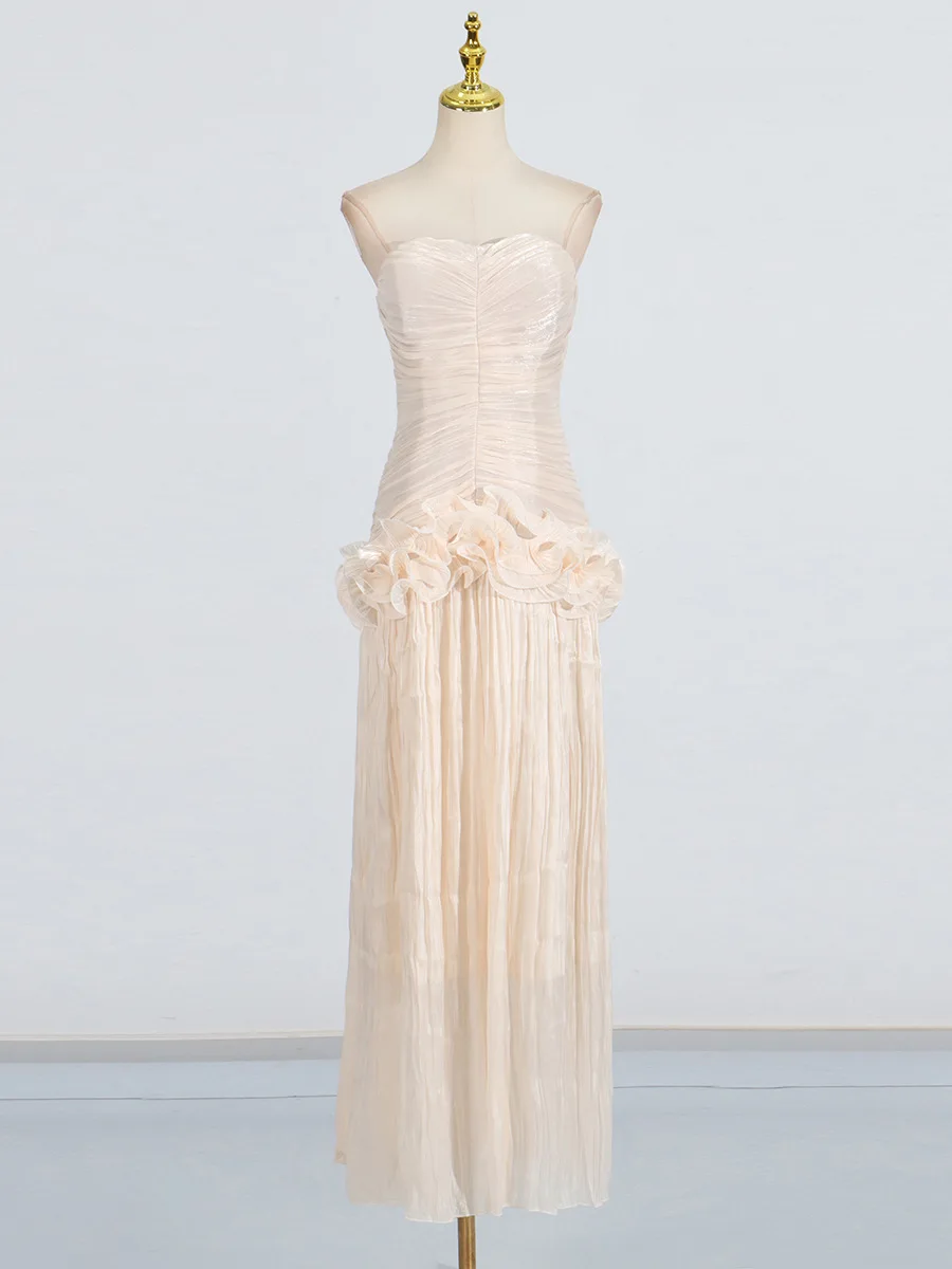 Women Summer High Quality French Dress New Style Niche Stitching Ruffle Design Long Elegant Evening Dress