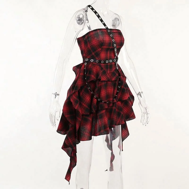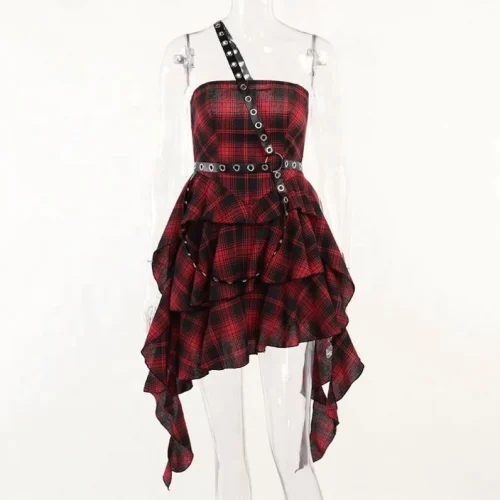 Product Name: Women Y2K Style Strapless Printed Plaid Color Work to Office Irregular Mini Dress