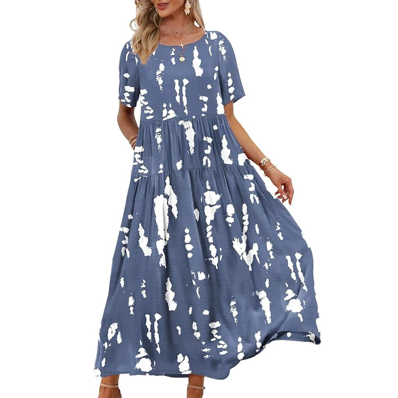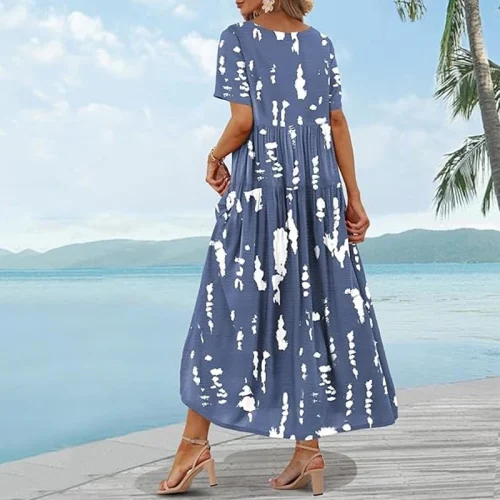Product Name: Women’s Casual Loose Summer Dress Women Casual Dress Long Boho Round Neck Beach Maxi Dress