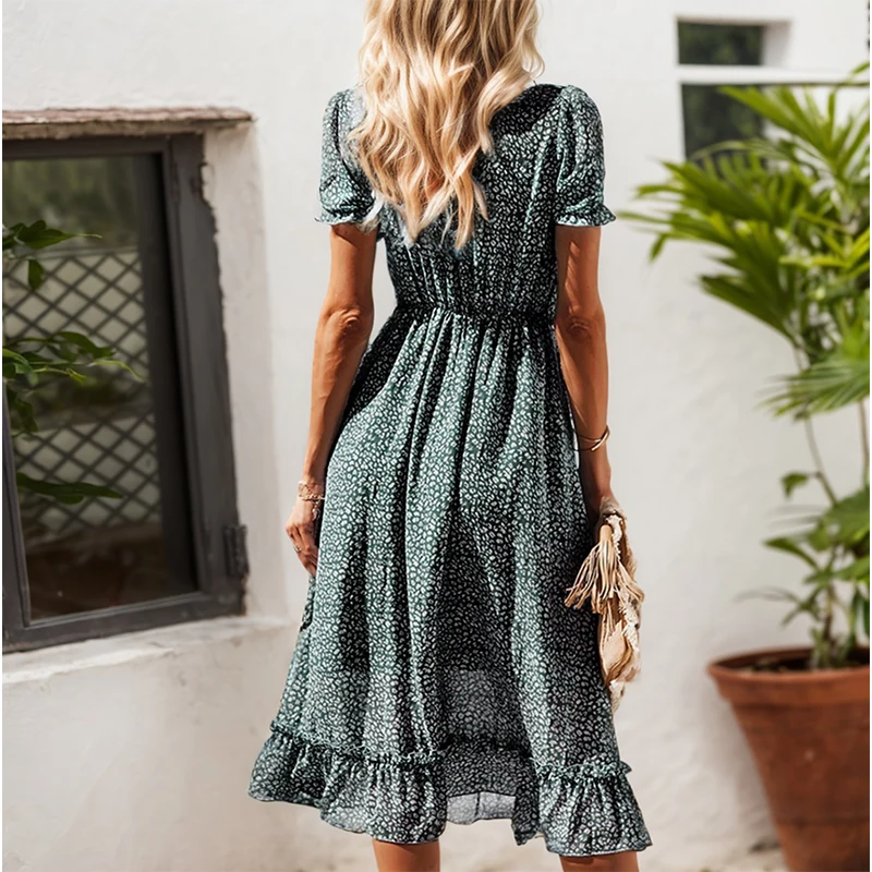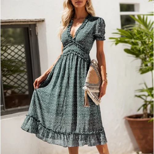 Product Name: Women’S Casual Short Sleeve Floral Print and Elegant Temperament Waist Dress Summer Dresses for Tall Bohemian Dress