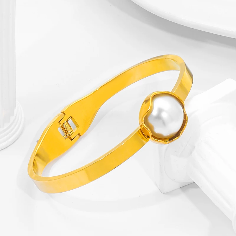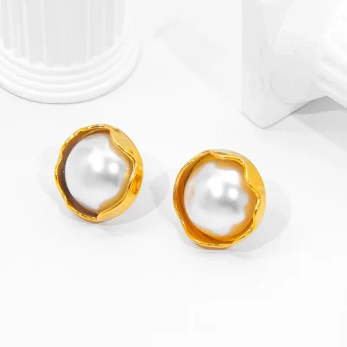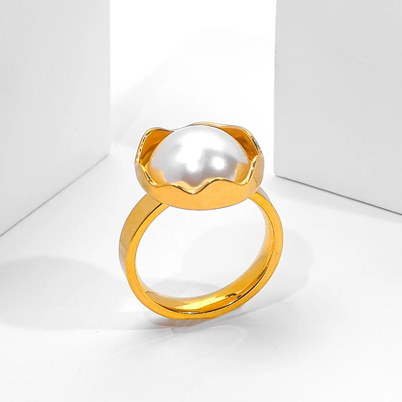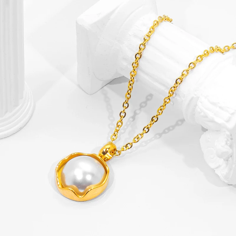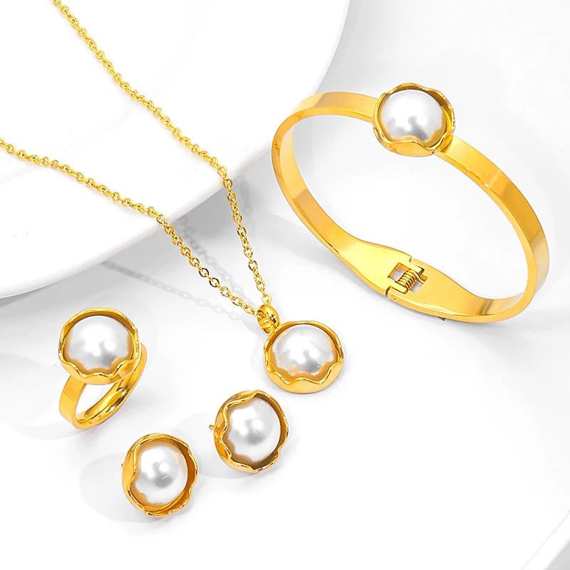 Product Name: Women’s Classic Style 18K Gold Plated Stainless Steel Jewelry Set Including Necklace Earrings Ring Bracelet with Plastic Pearls