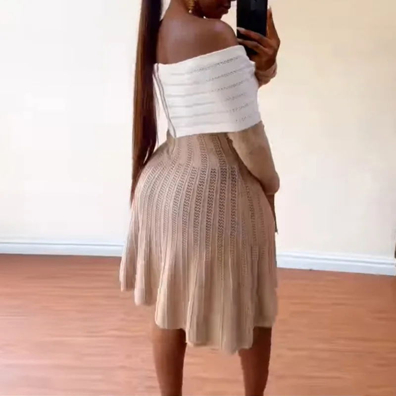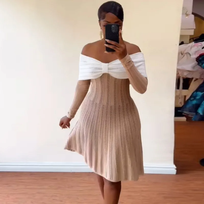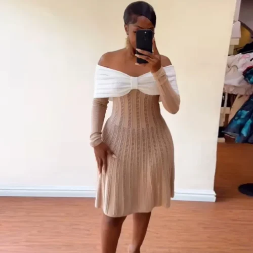 Product Name: Women’s Clothing Spring New Elegant Design Bow Off-Shoulder Short Sleeve Dress