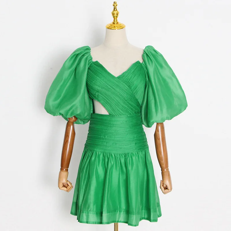 Product Name: Women’s Cocktail Dress Lantern Sleeve Cut Design V-Neck Mini Party Summer Dress Woven Dinner Solid Model Casual Modest Style S-L