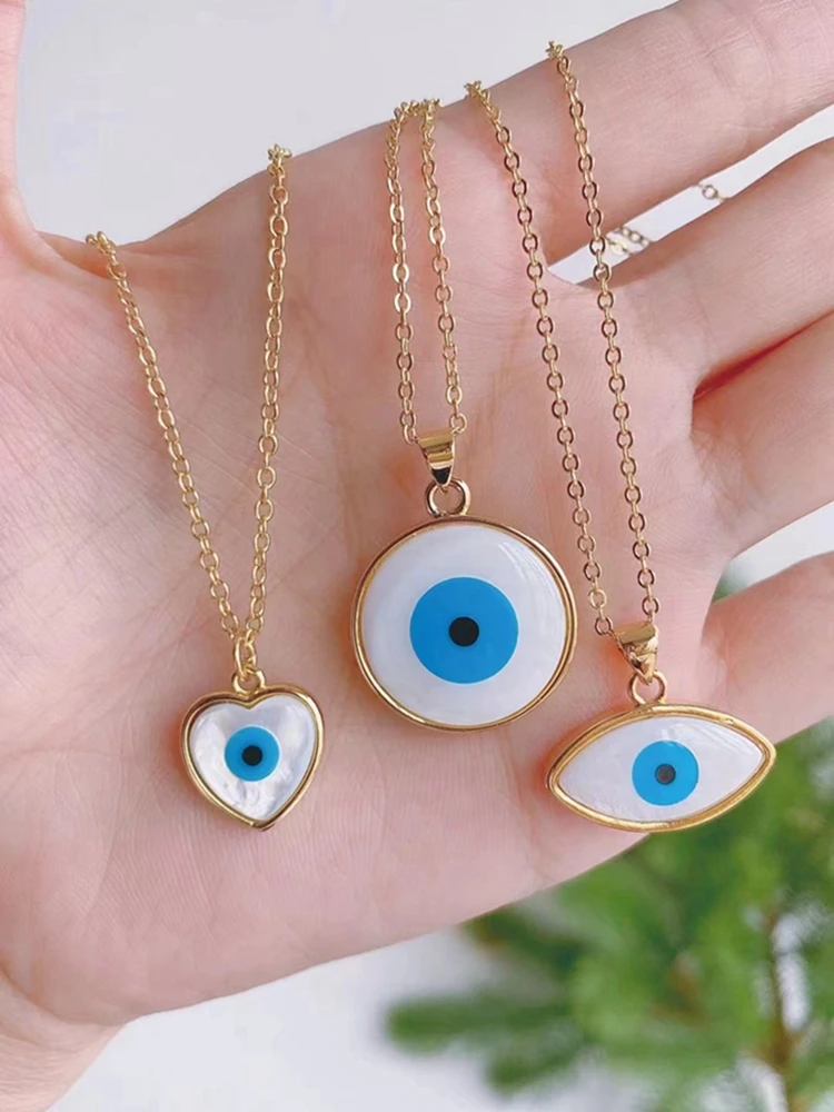 Product Name: Women’s Copper Jewelry Fashion Pendant Hamsa Blue Eye Necklace Eye Gold Plated Shell Various Shapes Necklace