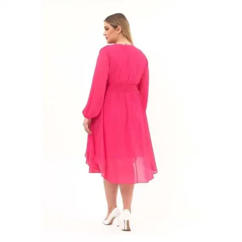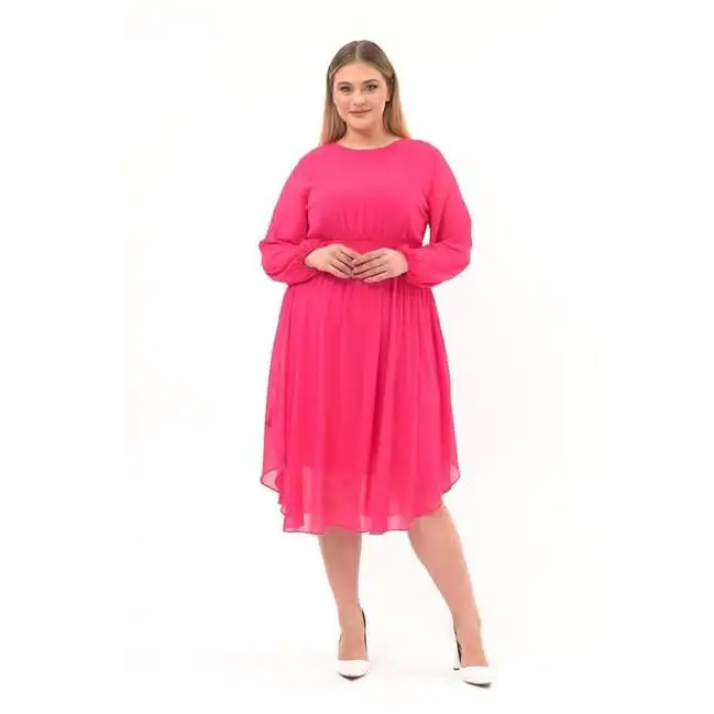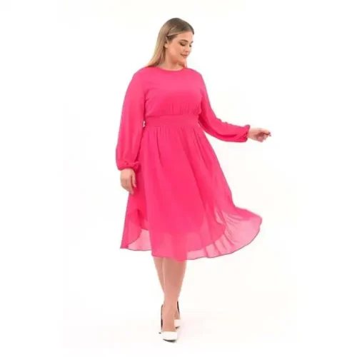 Product Name: Women’s Crew Neck Long Sleeve Detailed Midi Length Chiffon Dress 4466/120 Sexy Casual Wear