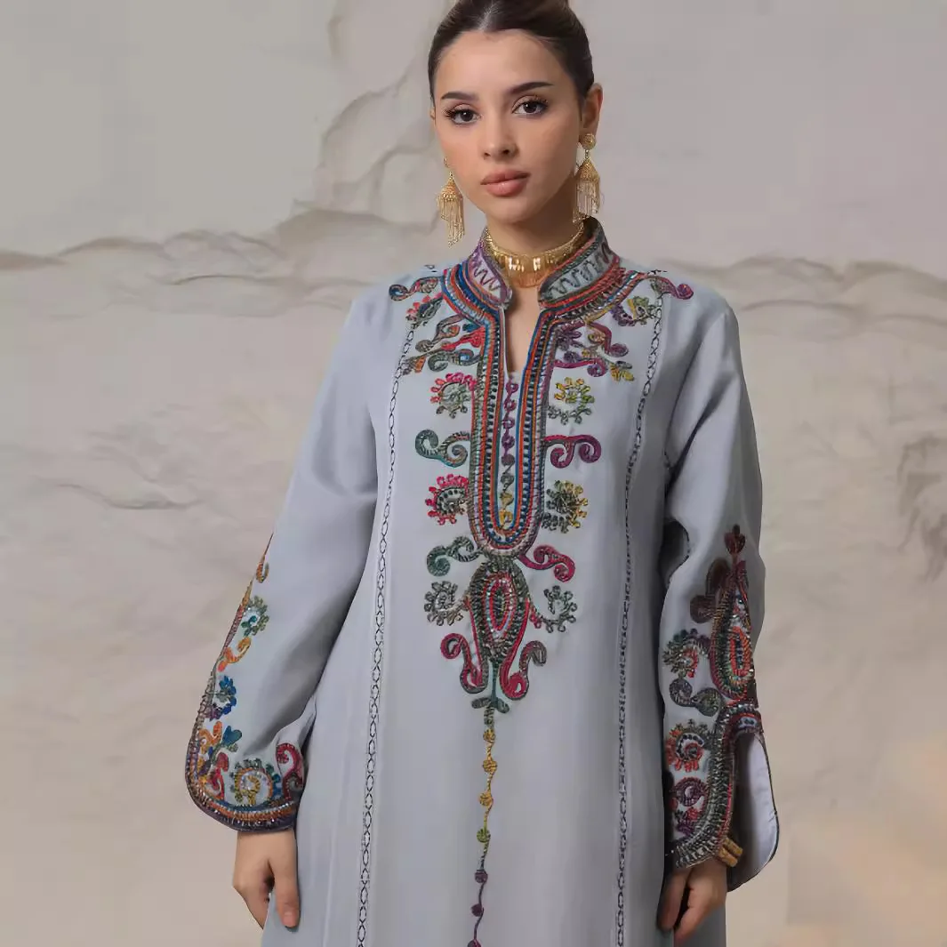 Product Name: Women’s Cross-Border Casual Dress 4069 Middle East ‘s Heavy Industry Rope Embroidery Craft Abaya Robe Excellent