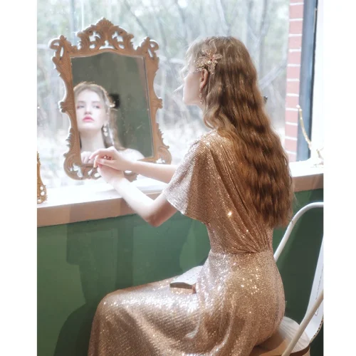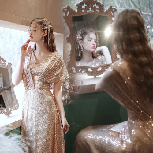 Product Name: Women’s Deep V-neck Backless Evening Dress Sexy Suspender Evening Dress Elegant Evening Dresses