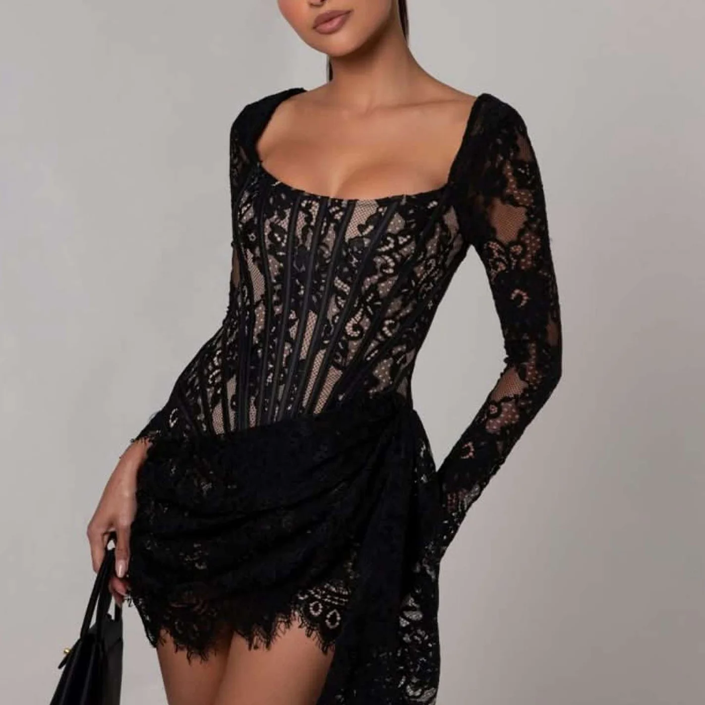 Product Name: Women’s Elegant Lace Luxury Evening Dress Sexy Long Sleeves Formal Occasion Dresses Birthday Evening Cocktail Party Dress