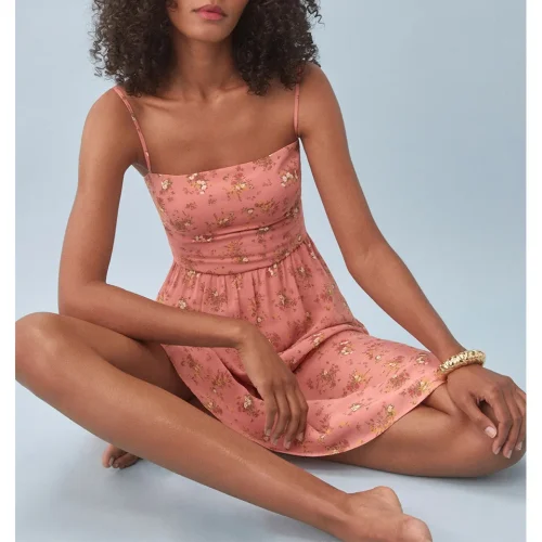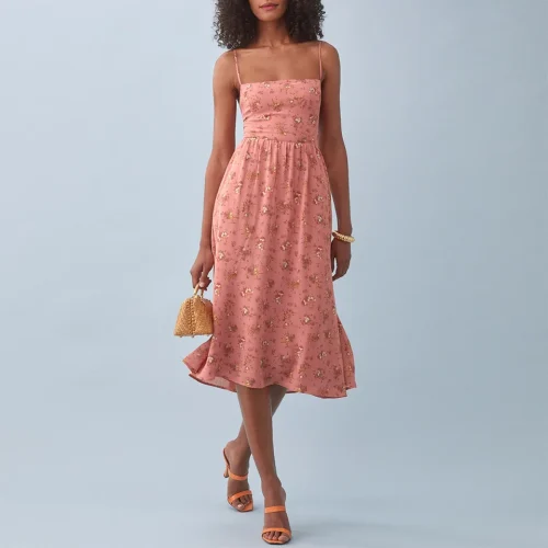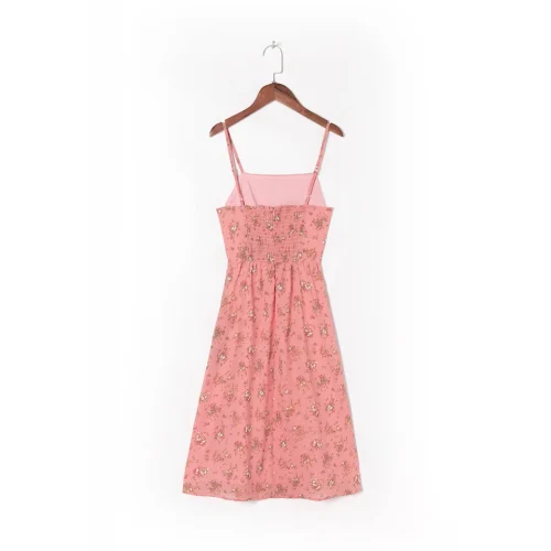 Product Name: Women’s Elegant Vintage Floral Print Midi Sundress Spaghetti Strap Sleeveless Beach Vacation Woven Front Digital Chiffon Natural