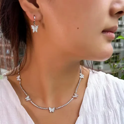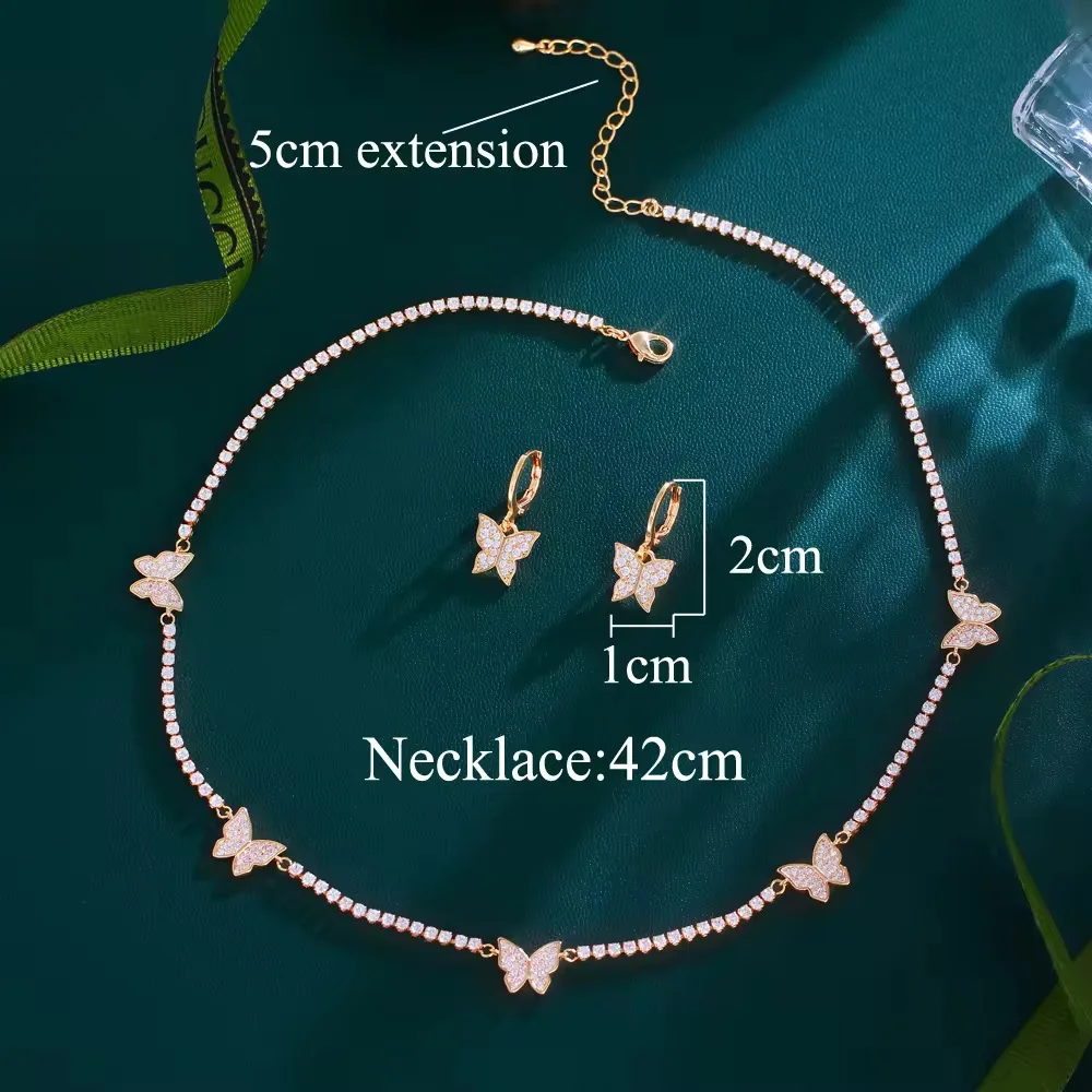 Product Name: Women’s Fine Jewelry Set Copper Alloy Pendant Necklace Earring Gold Plated Vintage Diamond Charms Design
