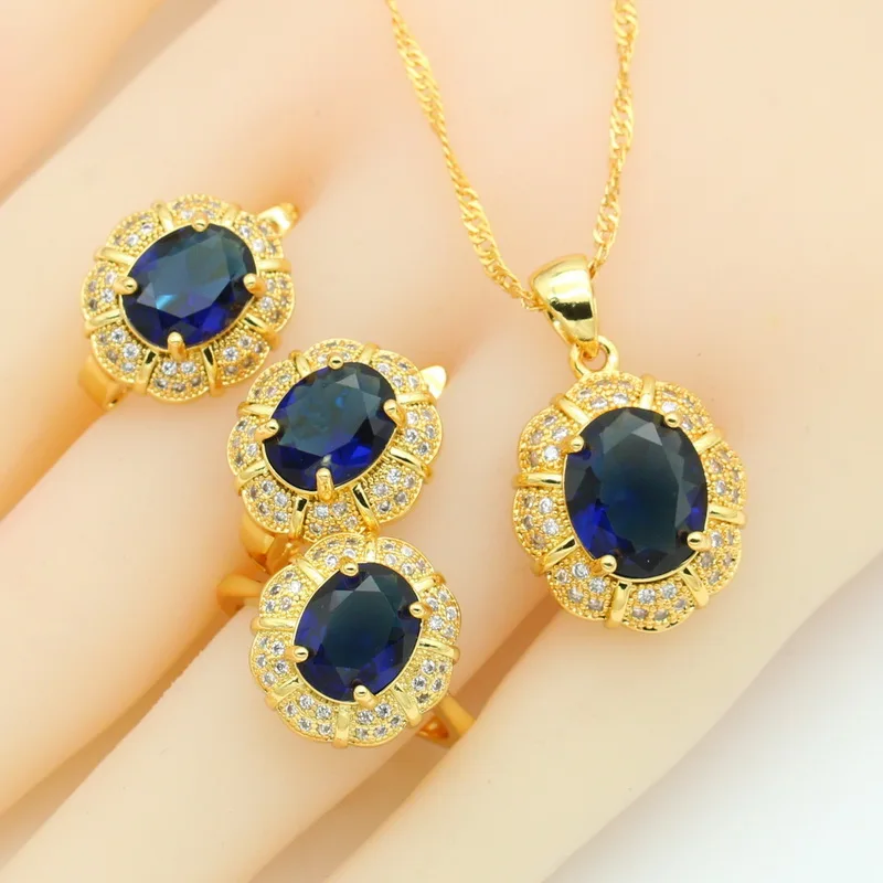 Women’s Gold Plated Jewelry Set Includes Earrings Necklace Bracelet Rings for Wedding Party Engagement Ladies Accessories Gift